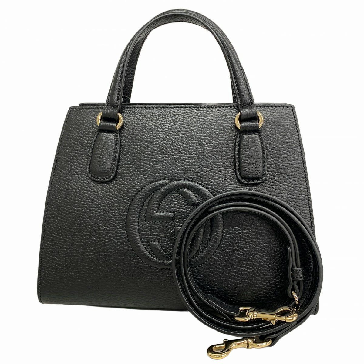 【5pc4501】グッチ ハンドバッグ ソーホー 607722 レザー ブラック ゴールド金具 2wayバッグ【中古】レディース