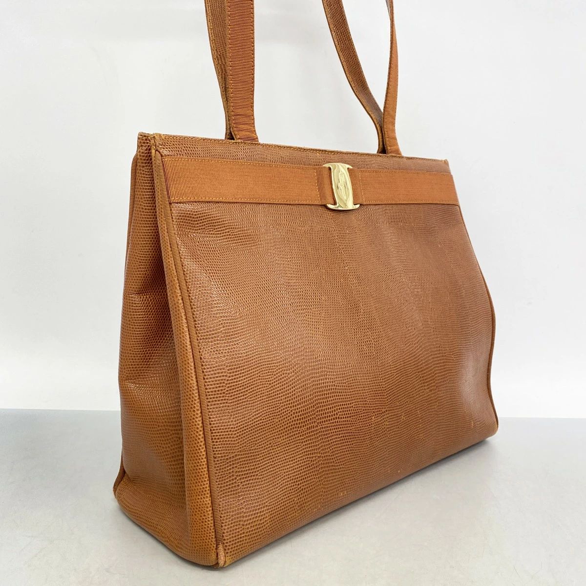 【5pd4944】サルヴァトーレフェラガモ ショルダーバッグ ヴァラ レザー ブラウン ゴールド金具【中古】レディース