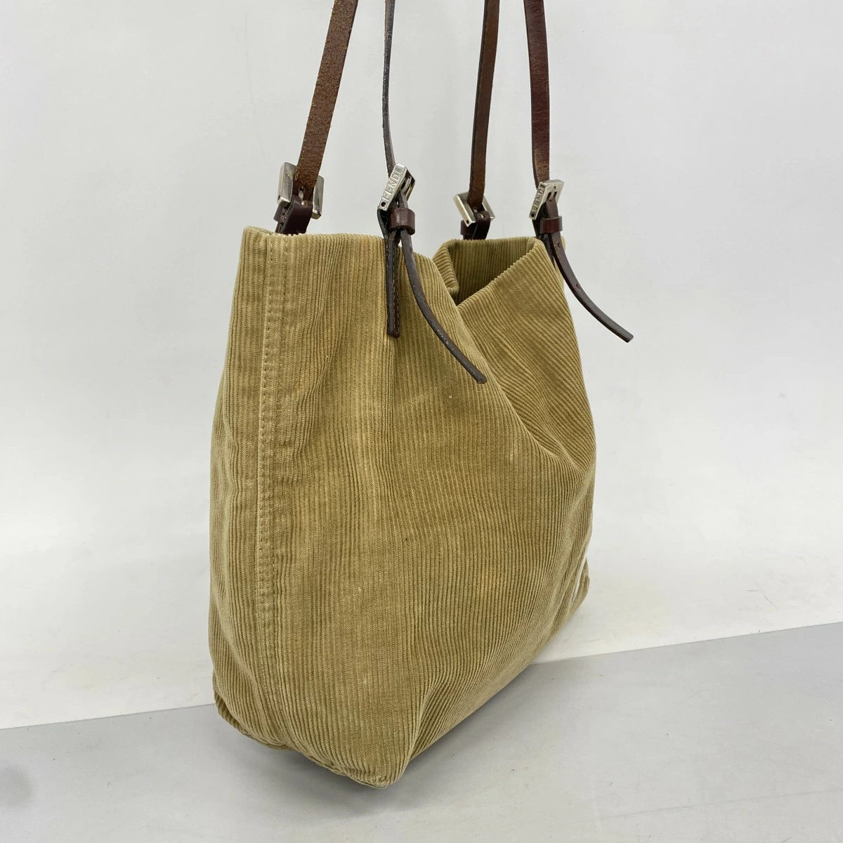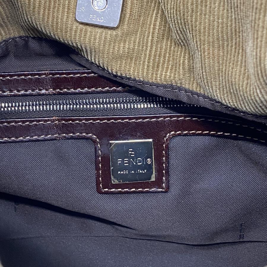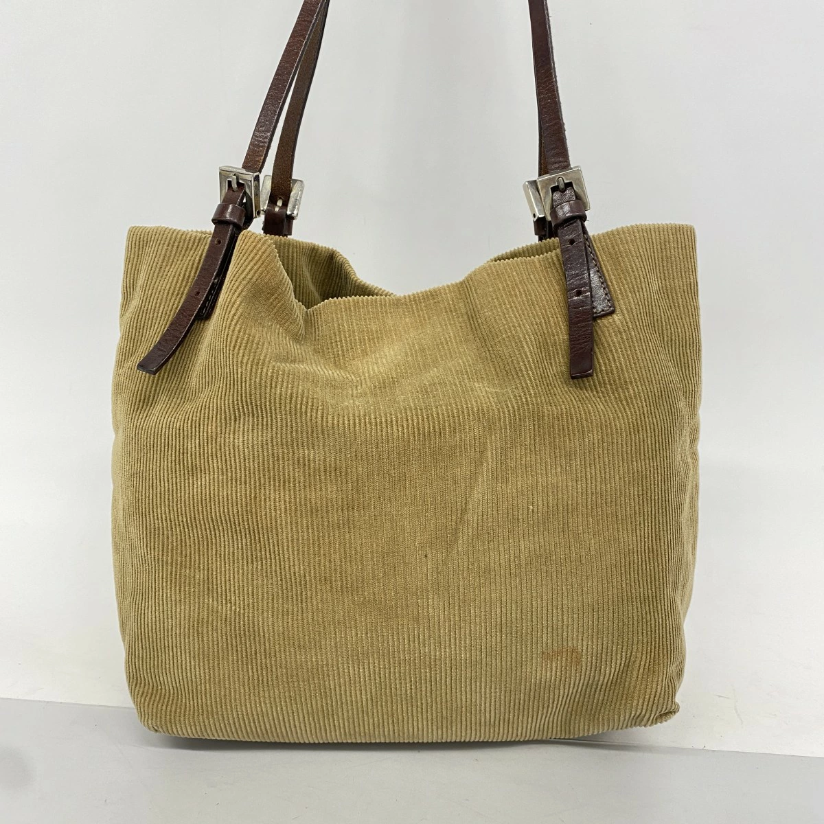 【5pd5076】フェンディ トートバッグ コーデュロイ ベージュ シルバー金具【中古】レディース