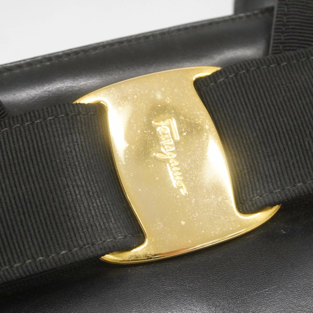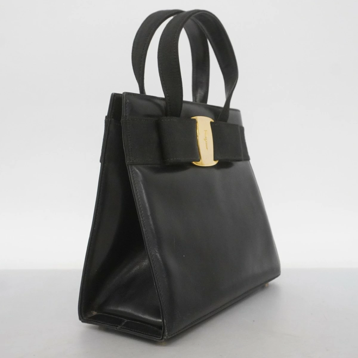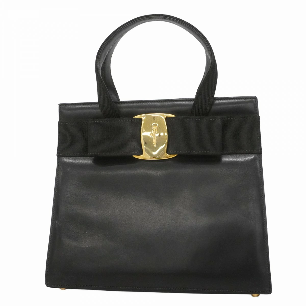 【5pd5456】サルヴァトーレフェラガモ ハンドバッグ ヴァラ レザー ブラック ゴールド金具【中古】レディース