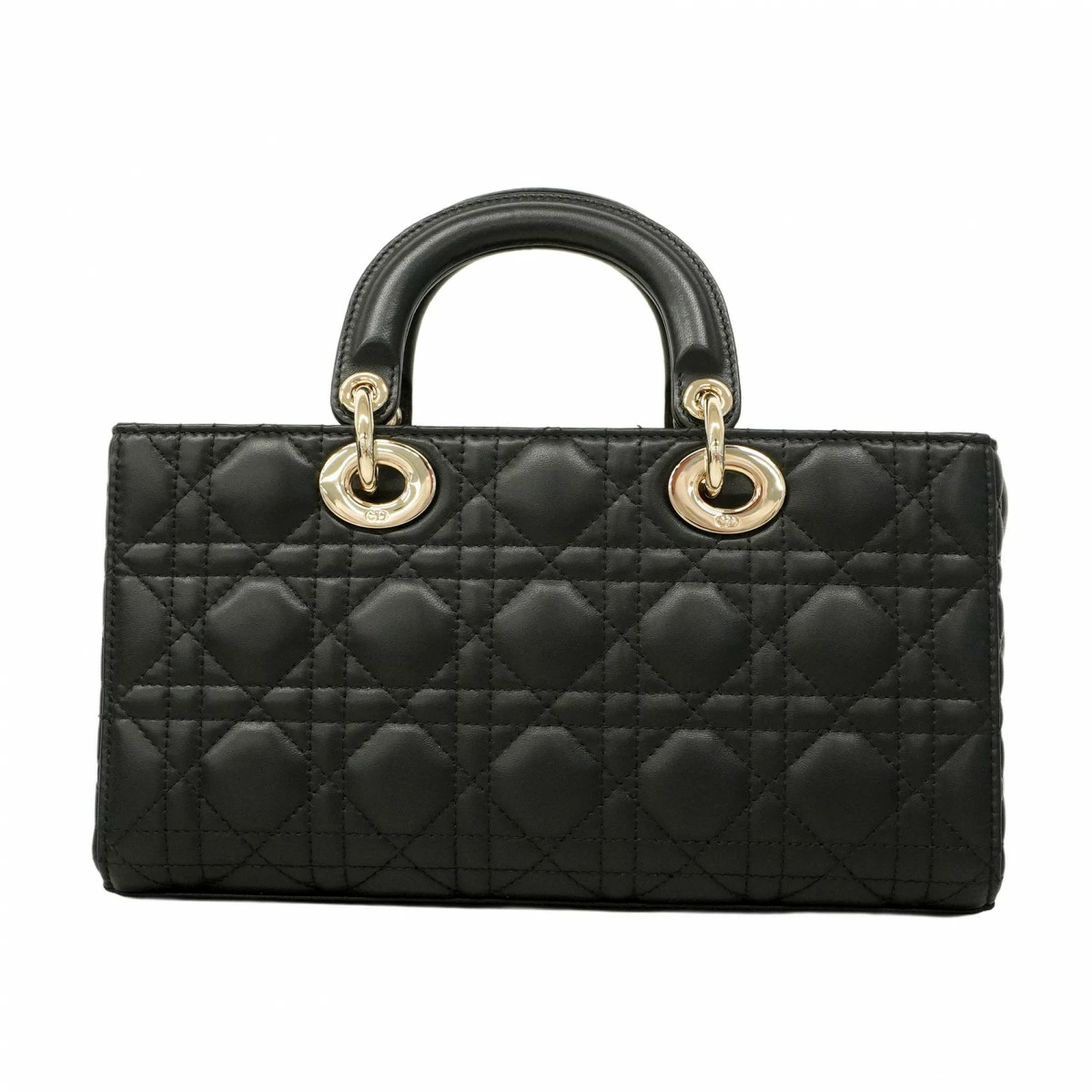 【5pd6670】クリスチャンディオール ハンドバッグ カナージュ ラムスキン ブラック シルバー金具 2wayバッグ【中古】レディース