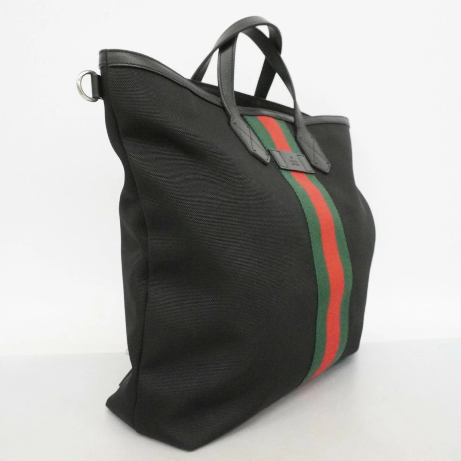 【6db1393-k】グッチ トートバッグ シェリーライン 387105 ナイロン ブラック シルバー金具 2wayバッグ【中古】メンズ