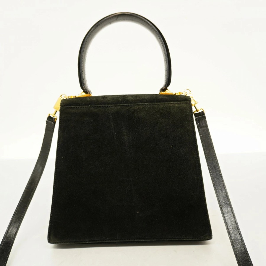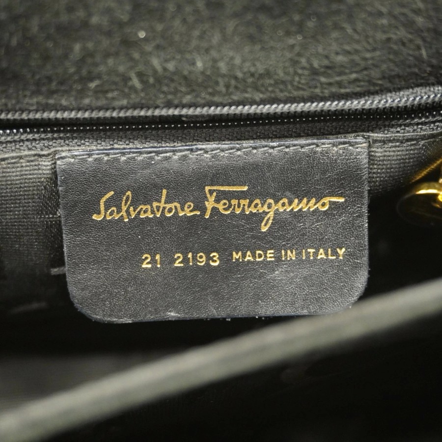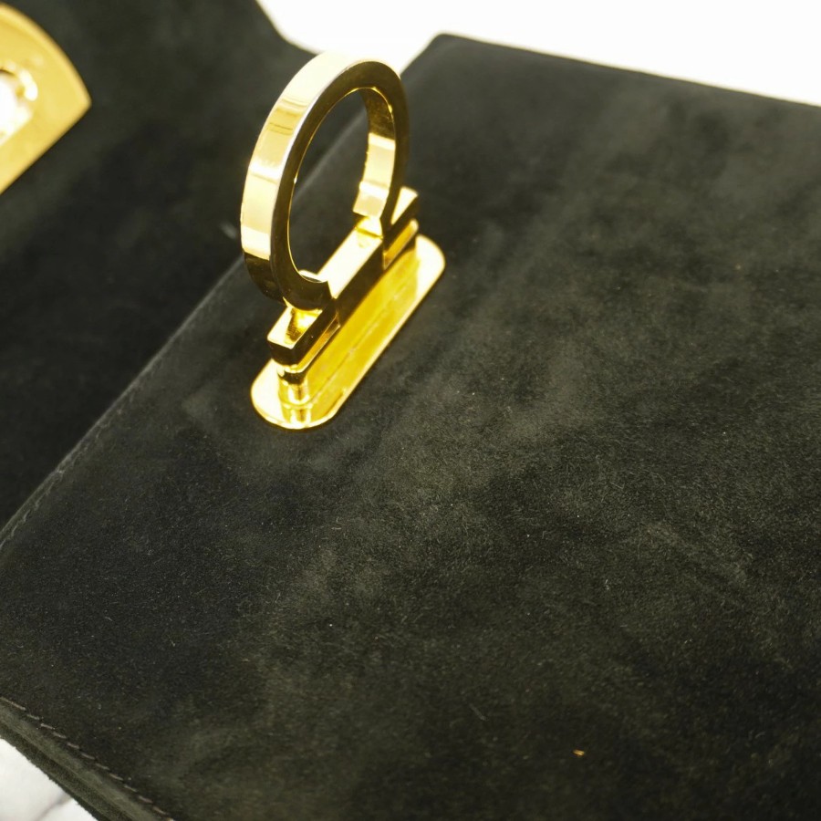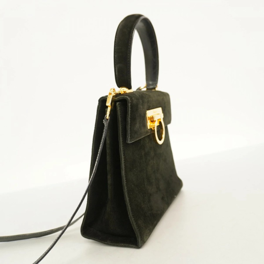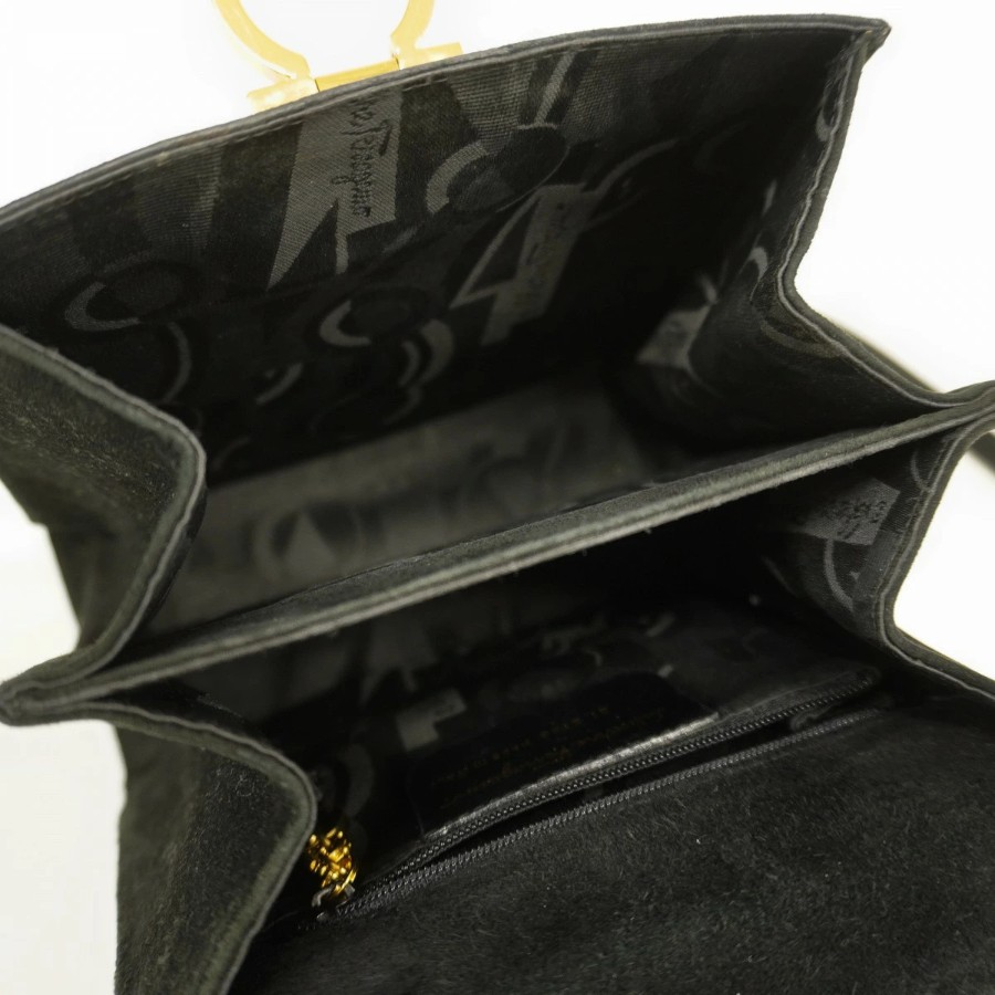 【6db1975】サルヴァトーレフェラガモ ハンドバッグ ガンチーニ スウェード ブラック ゴールド金具 2wayバッグ【中古】レディース