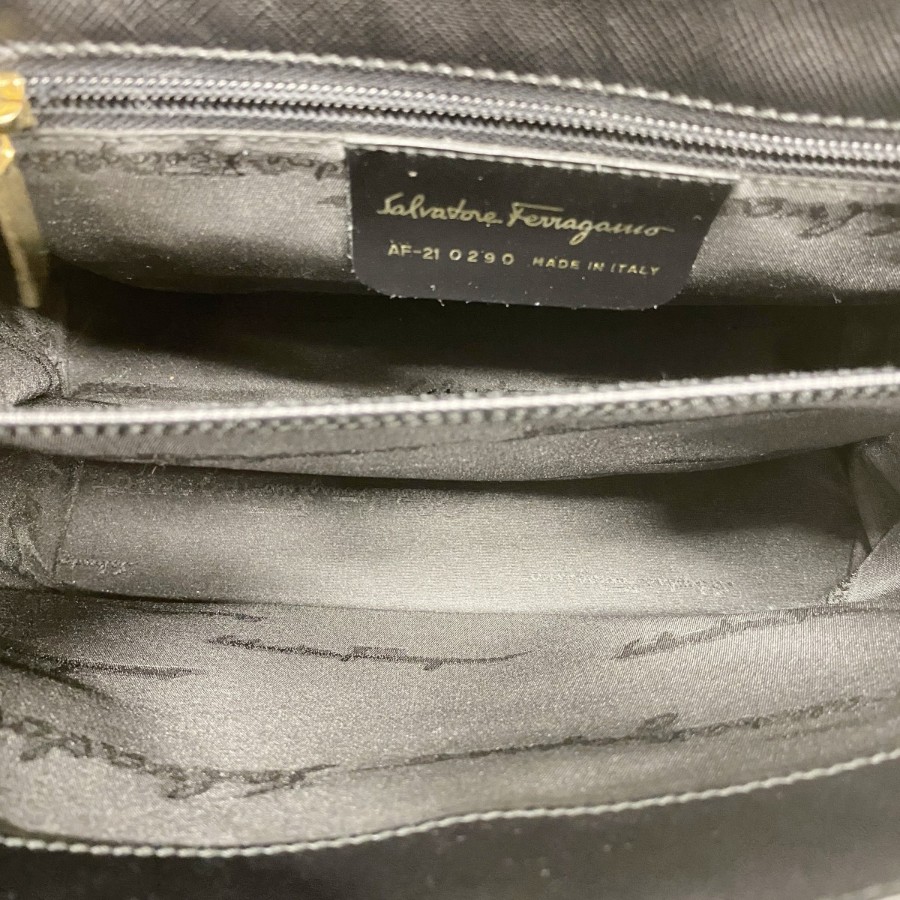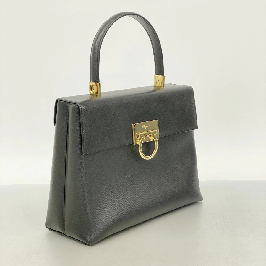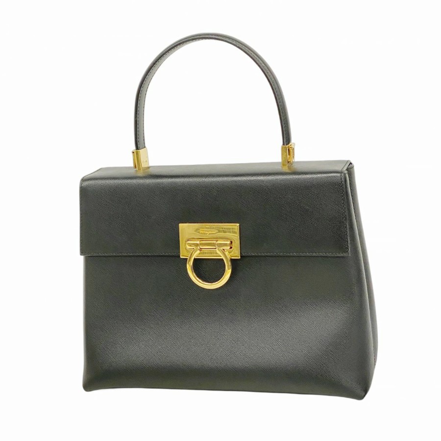 【6dc2593】サルヴァトーレフェラガモ ハンドバッグ ガンチーニ レザー ブラック ゴールド金具【中古】レディース