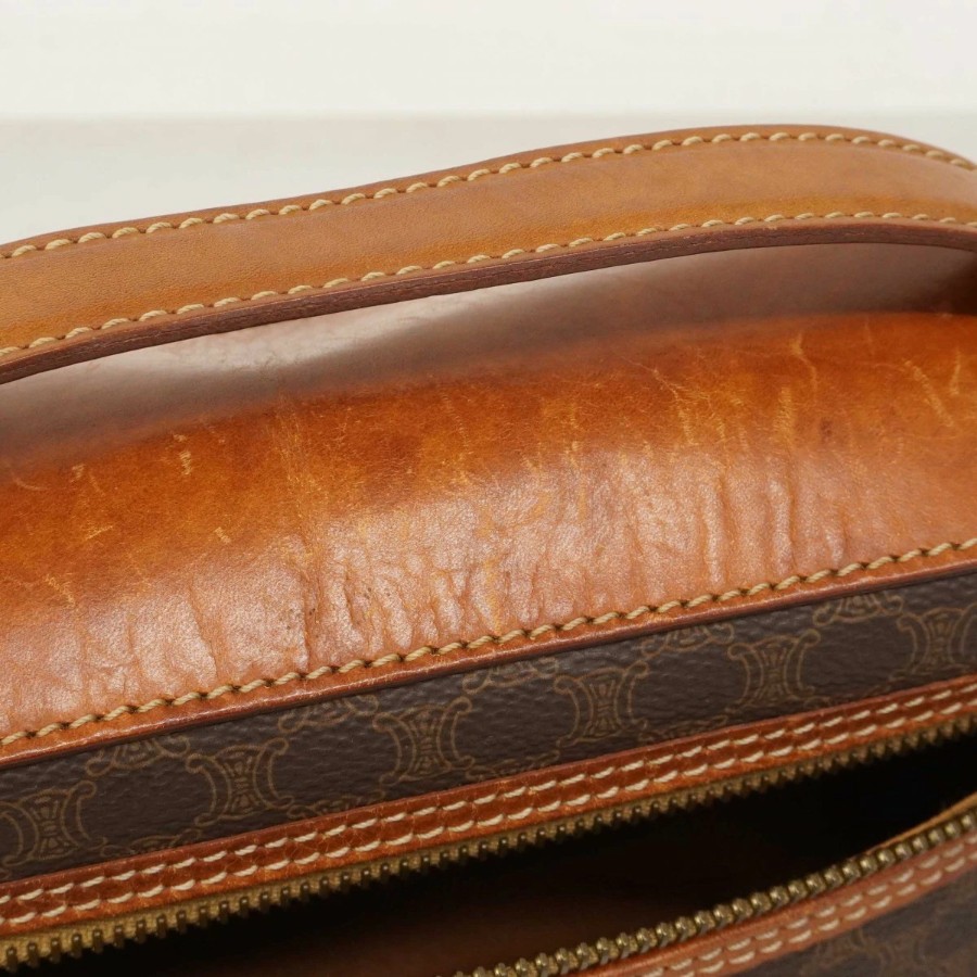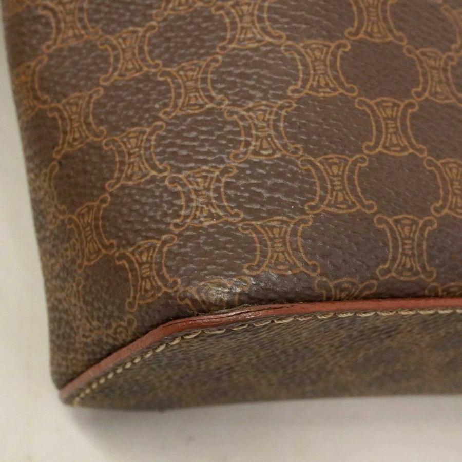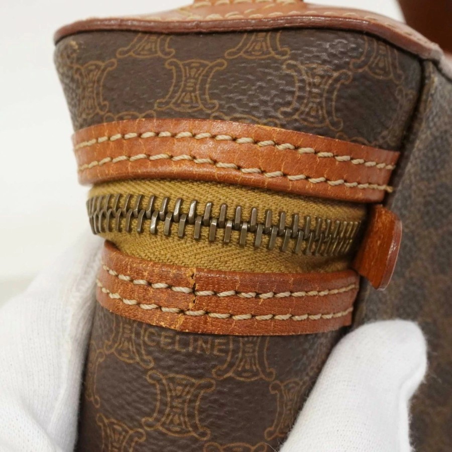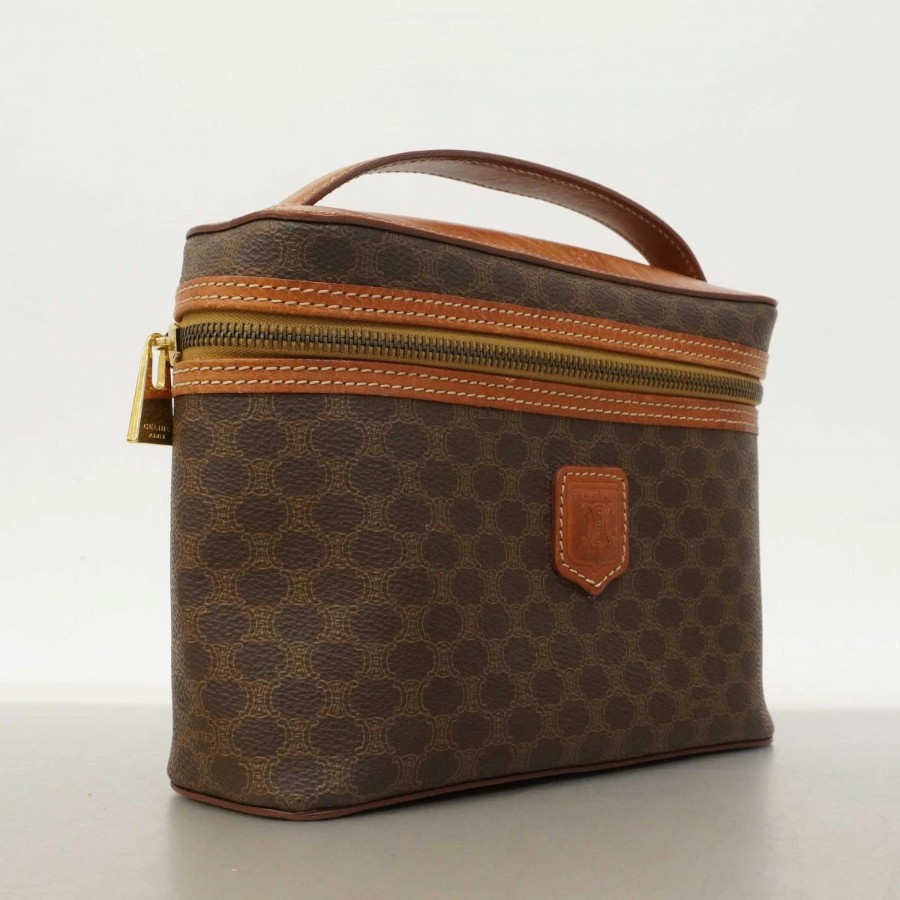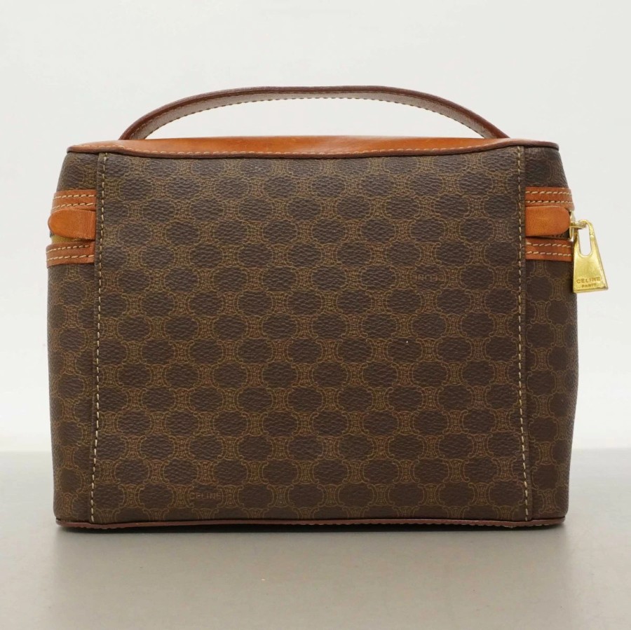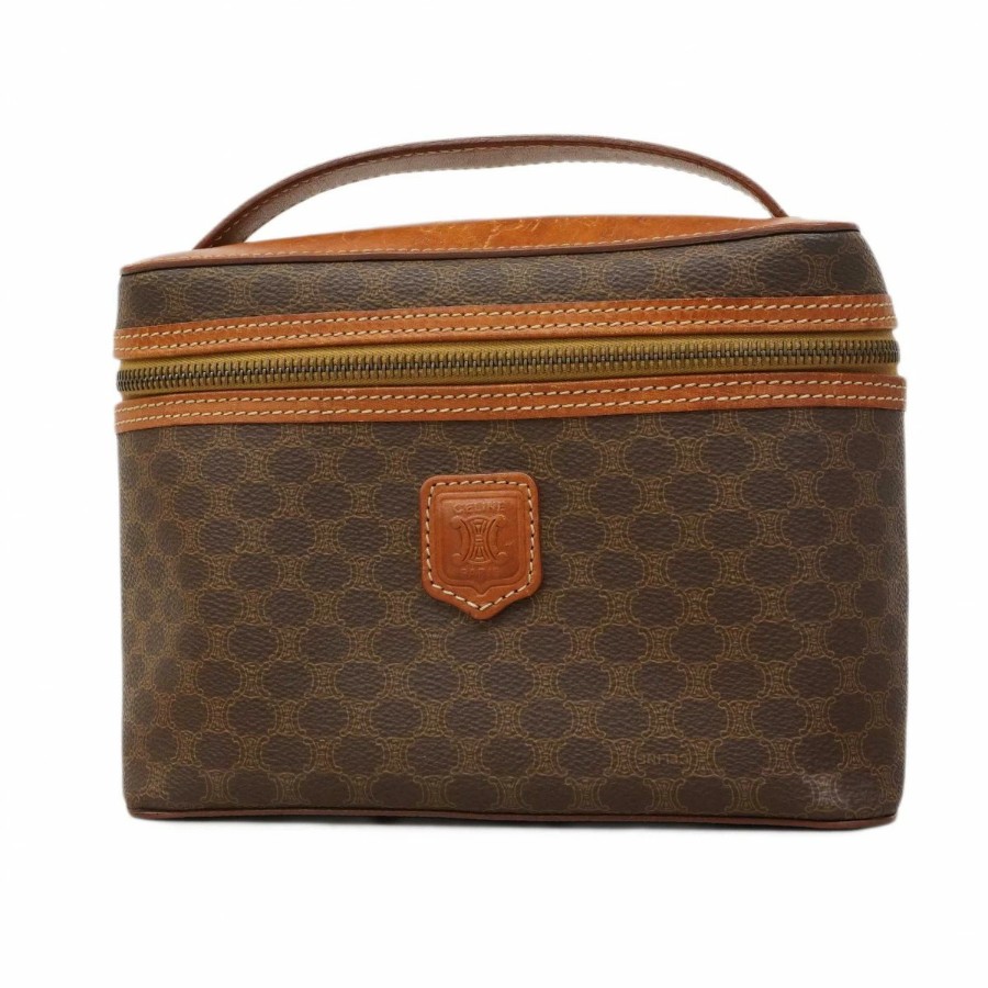 【6dc2944】セリーヌ バニティバッグ マカダム PVC ブラウン ゴールド金具【中古】レディース