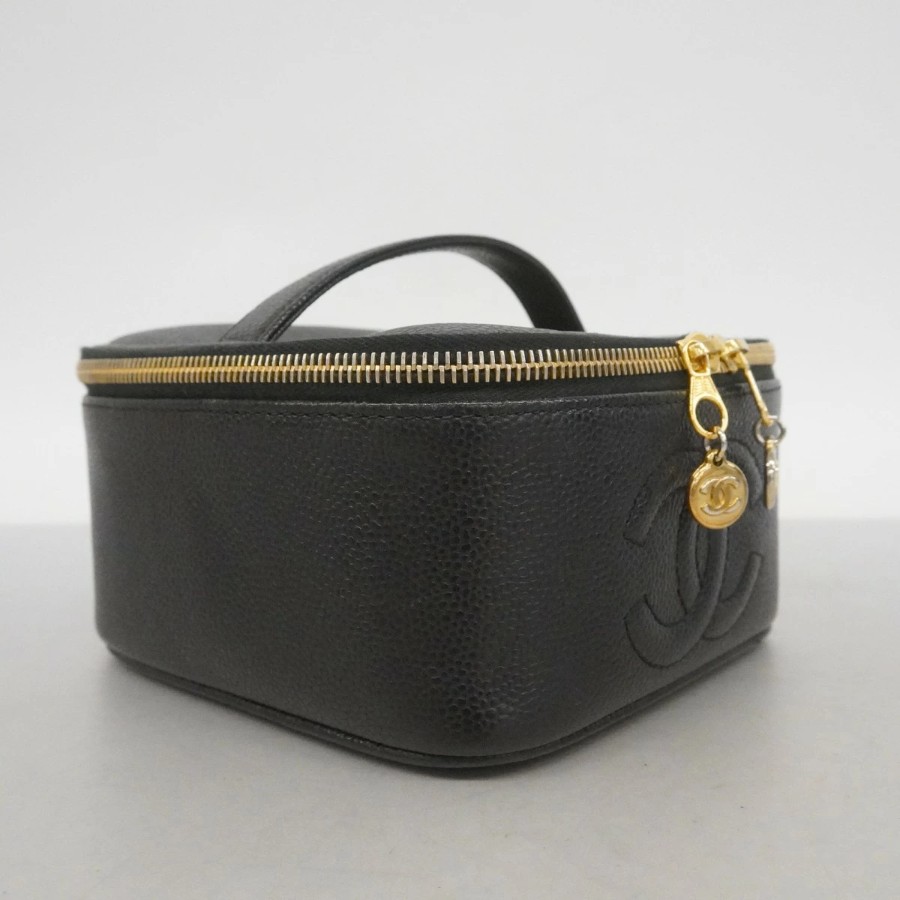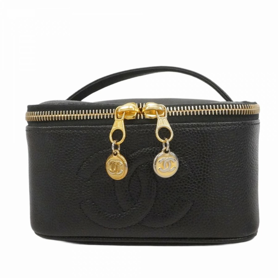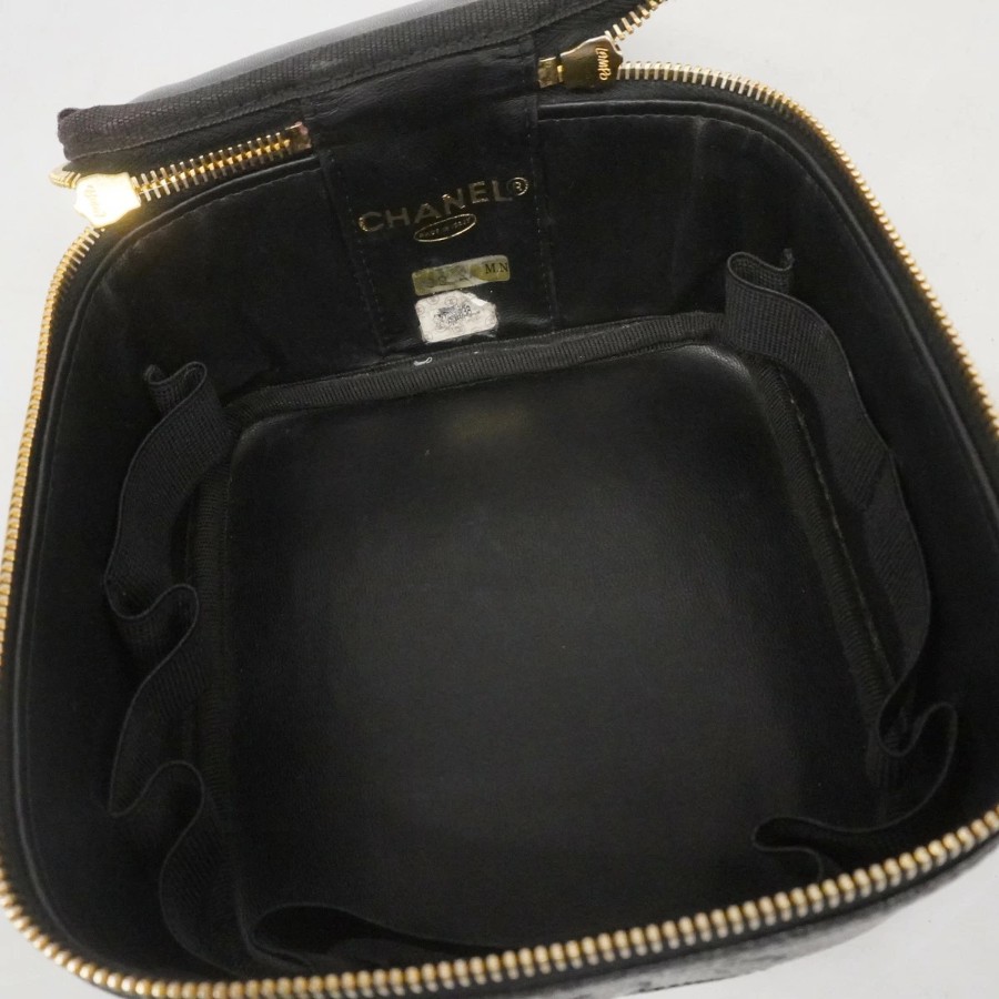【6dc3408-k】シャネル バニティバッグ キャビアスキン ブラック ゴールド金具【中古】レディース