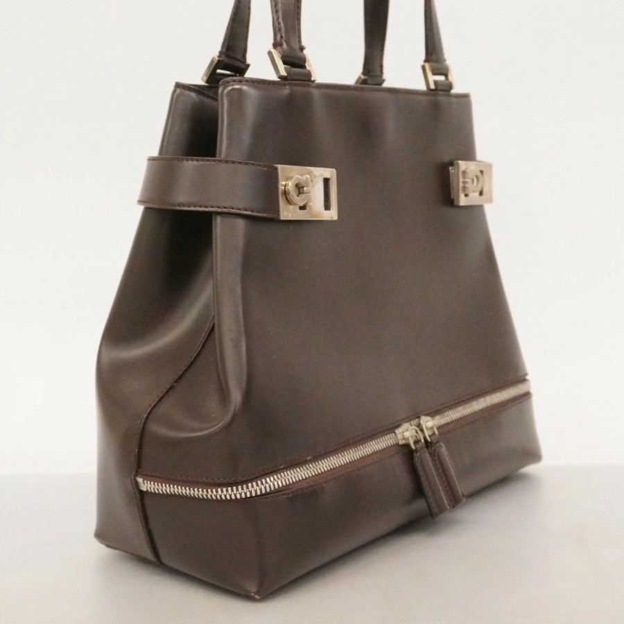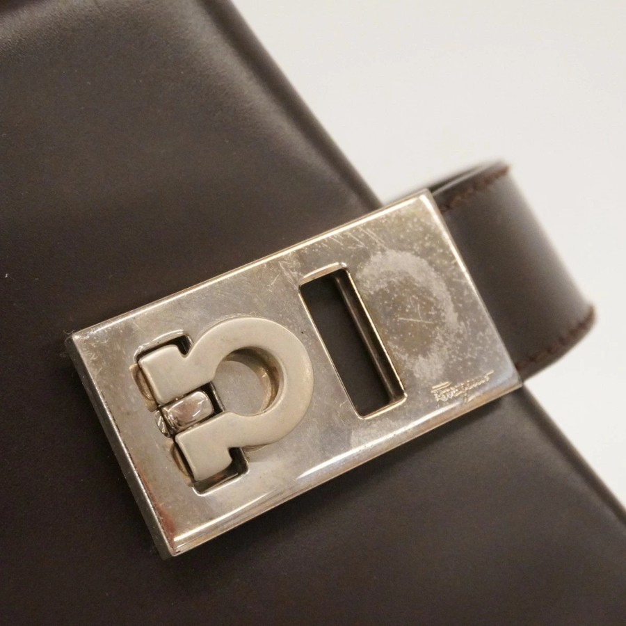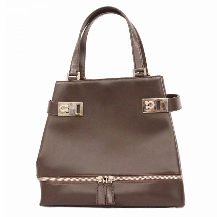 【6dc3983】サルヴァトーレフェラガモ ハンドバッグ ガンチーニ レザー ブラウン シルバー金具【中古】レディース