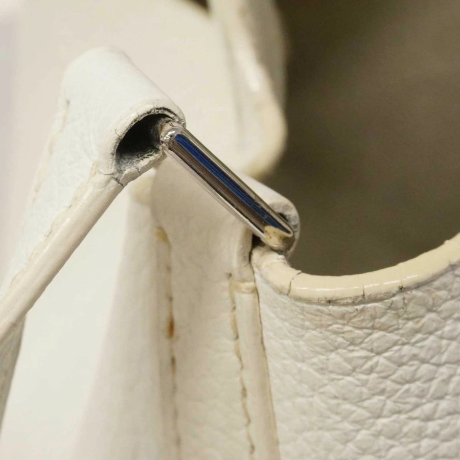 【6dd4576】Hermes Picotin Lock PM Handbag, Taurillon Clemence Leather, White, Silver Hardware, □H Stamp [Used] Women's