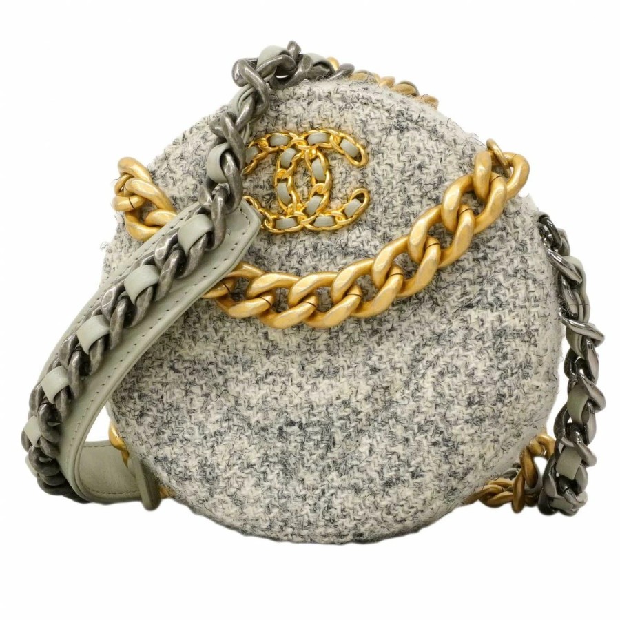 【6dd4656】シャネル ハンドバッグ チェーンショルダー シャネル19 ツイード グレー ゴールド/シルバー金具 2wayバッグ【中古】レディース