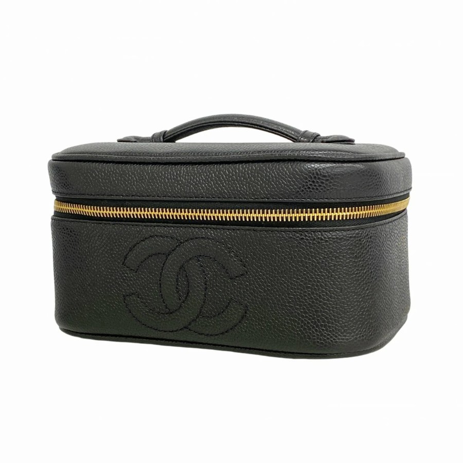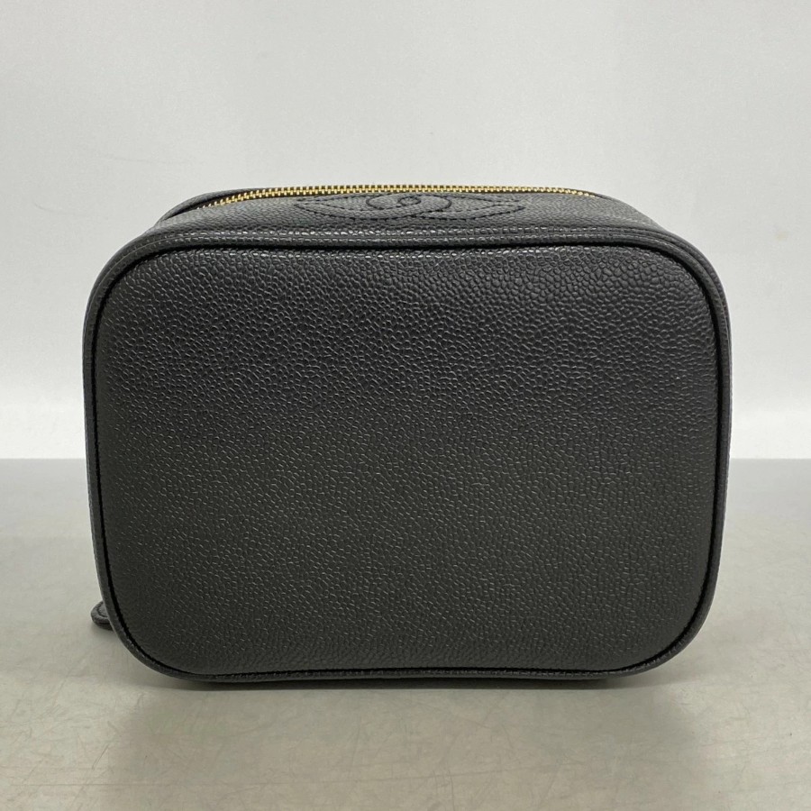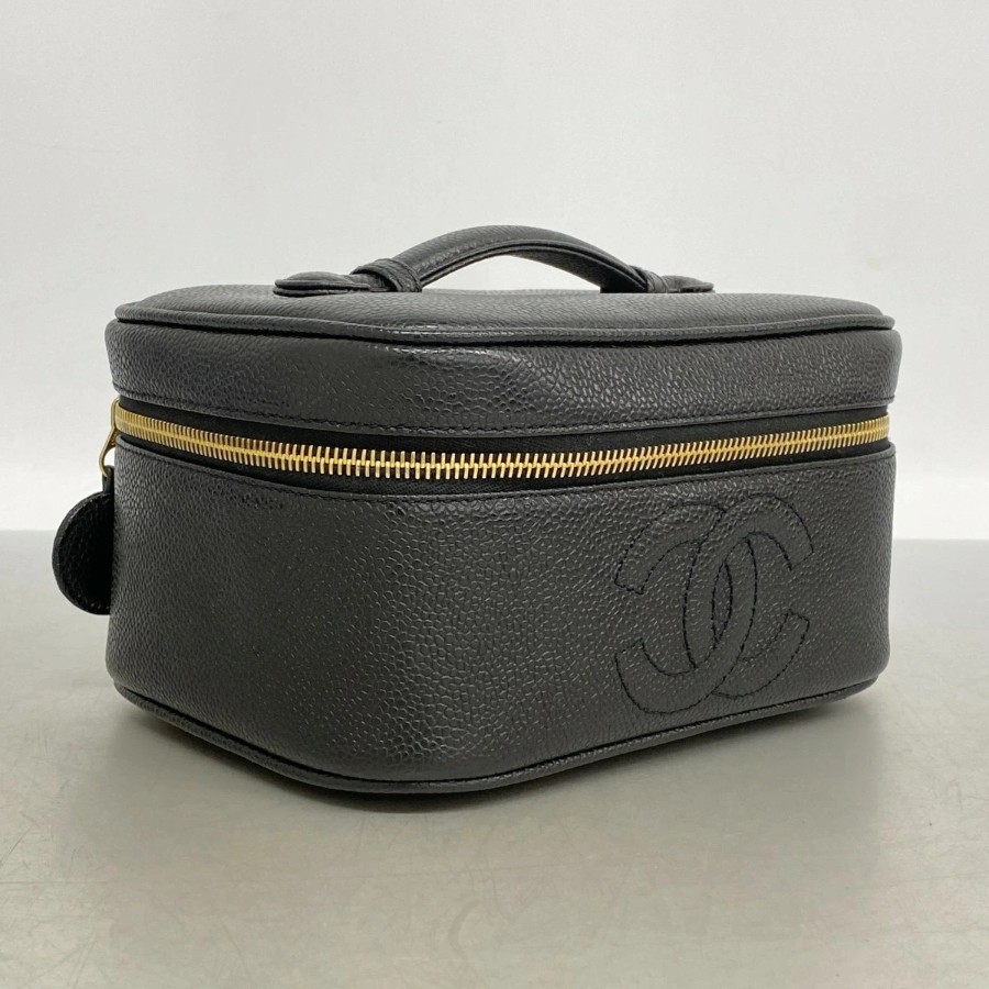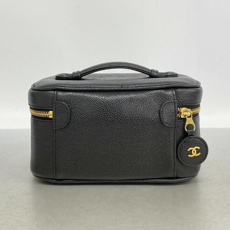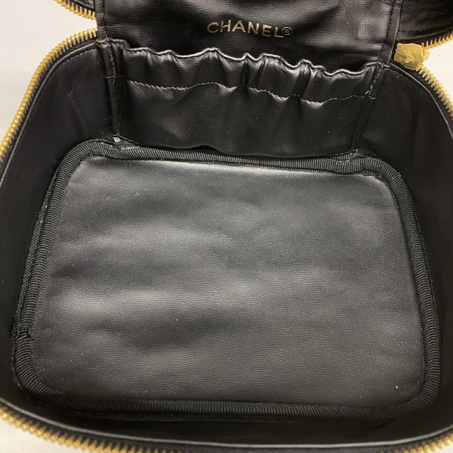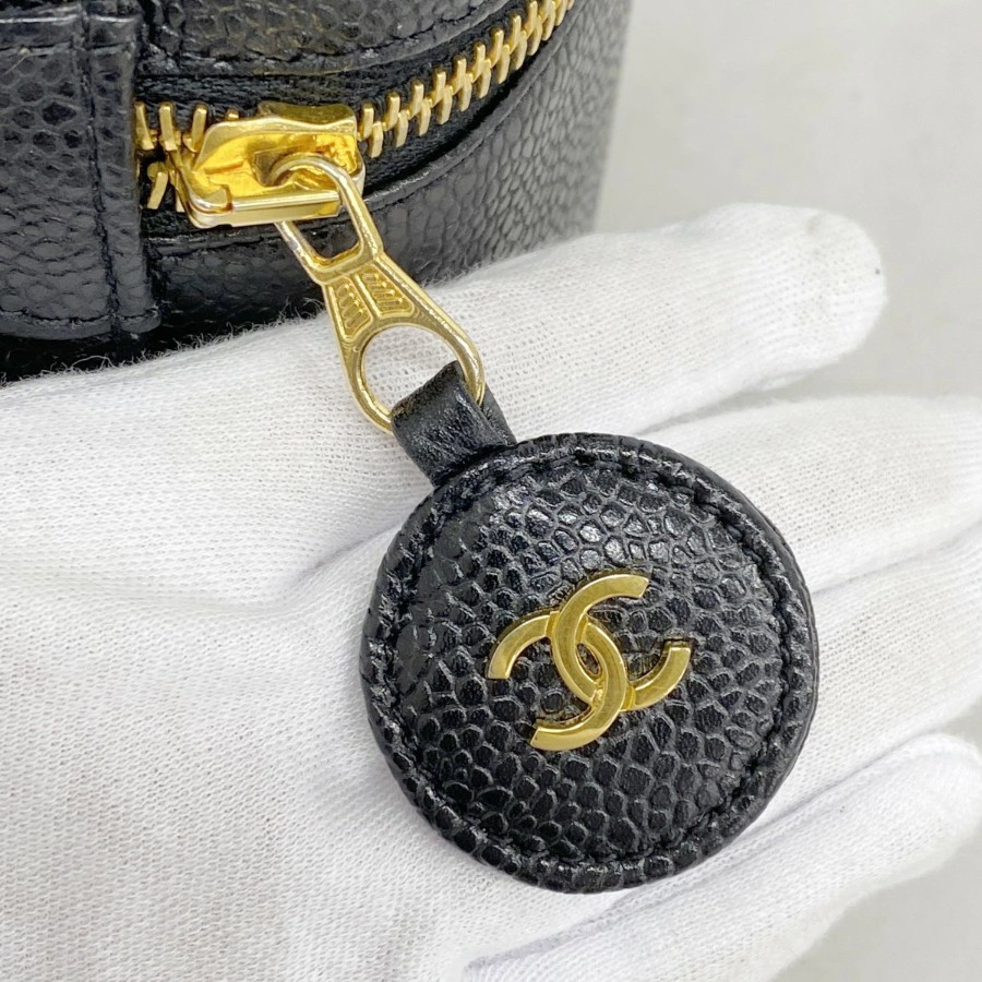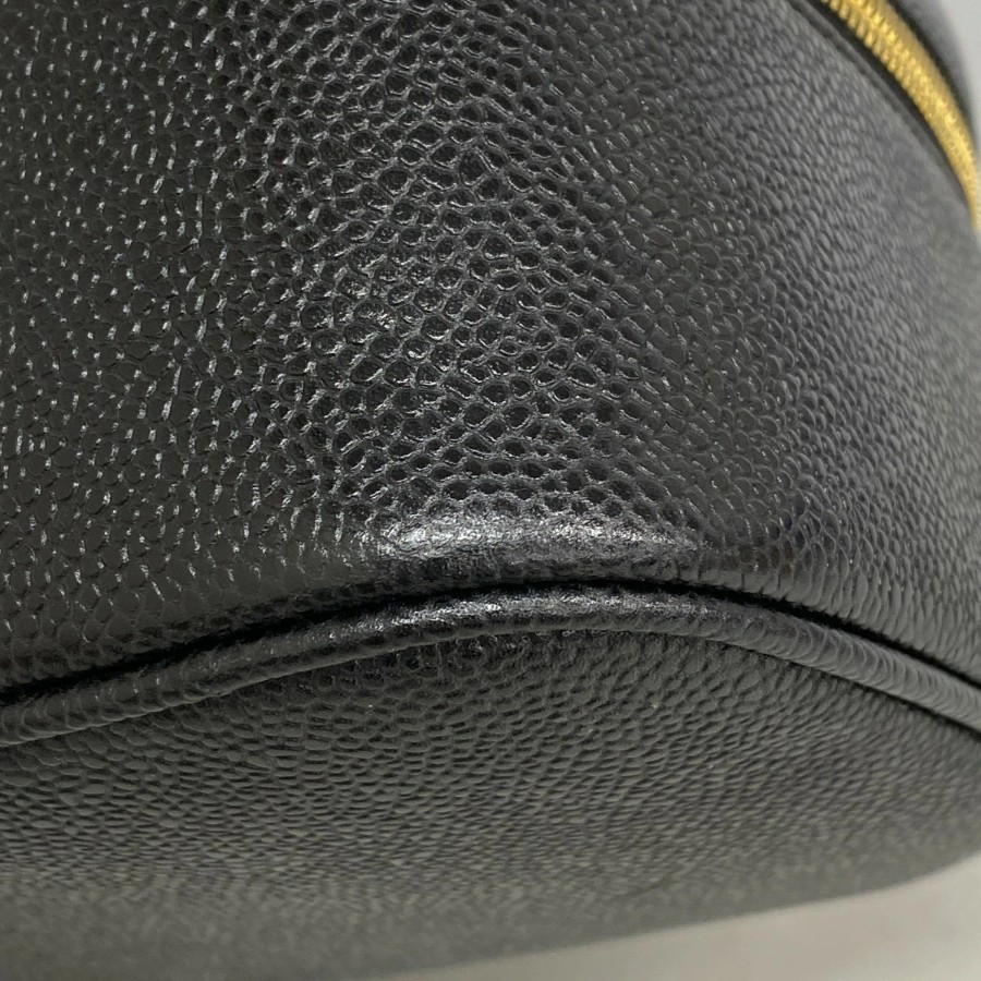 【6dd4814】シャネル バニティバッグ キャビアスキン ブラック ゴールド金具【中古】レディース