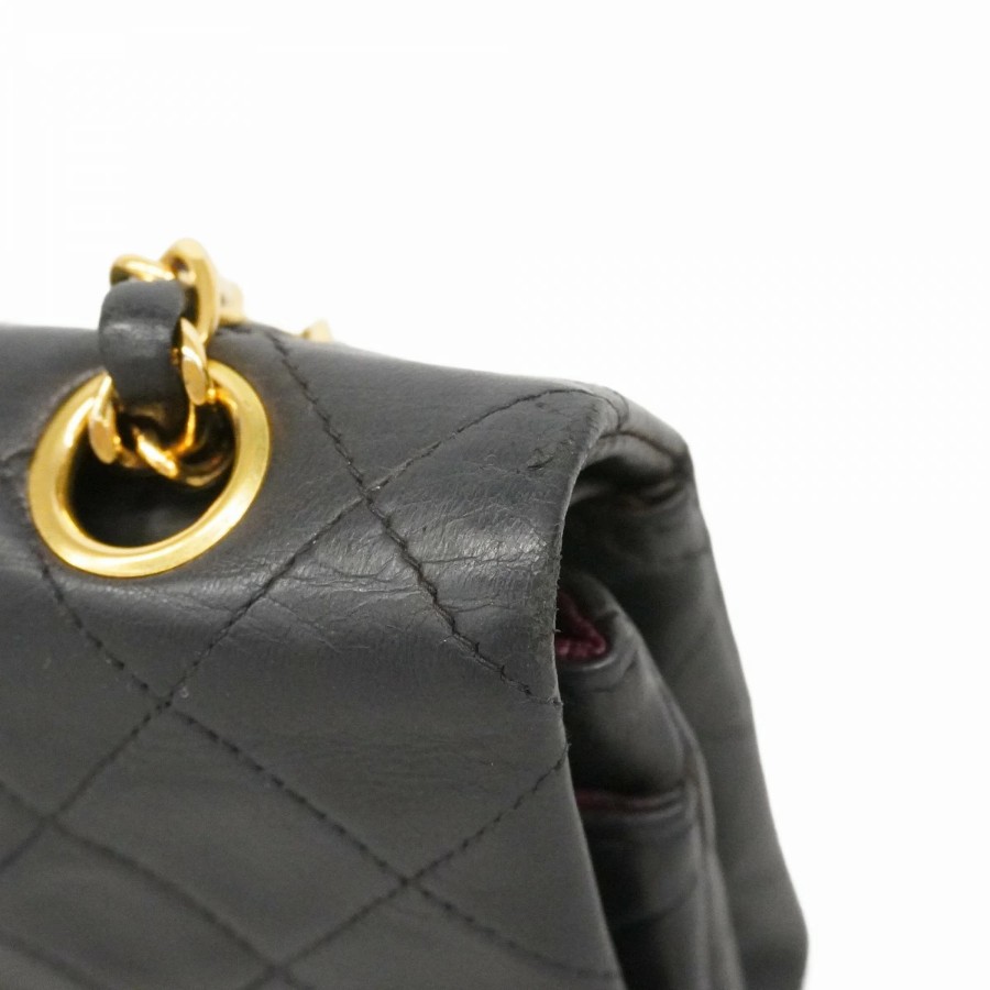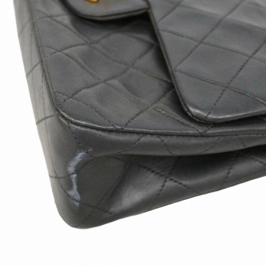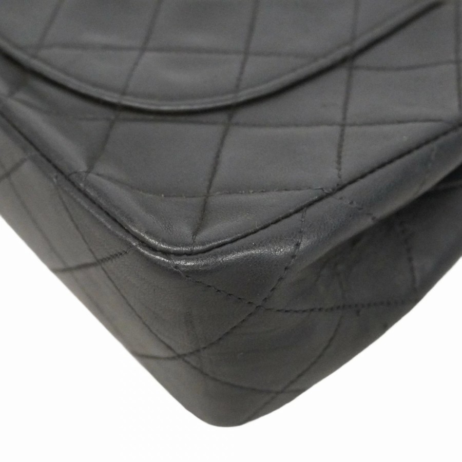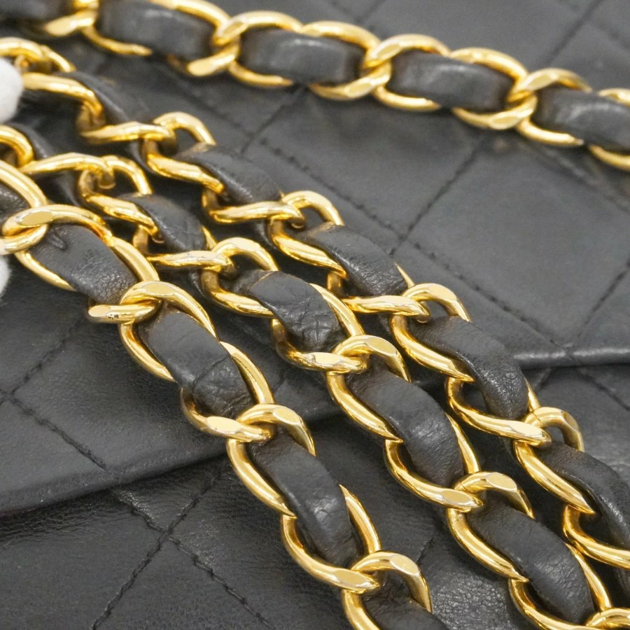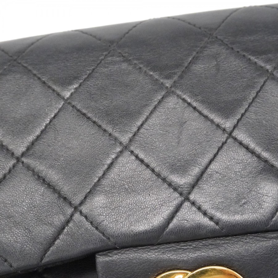 【6dd5374-h】シャネル ショルダーバッグ マトラッセ Wフラップ Wチェーン ラムスキン ブラック ゴールド金具【中古】レディース