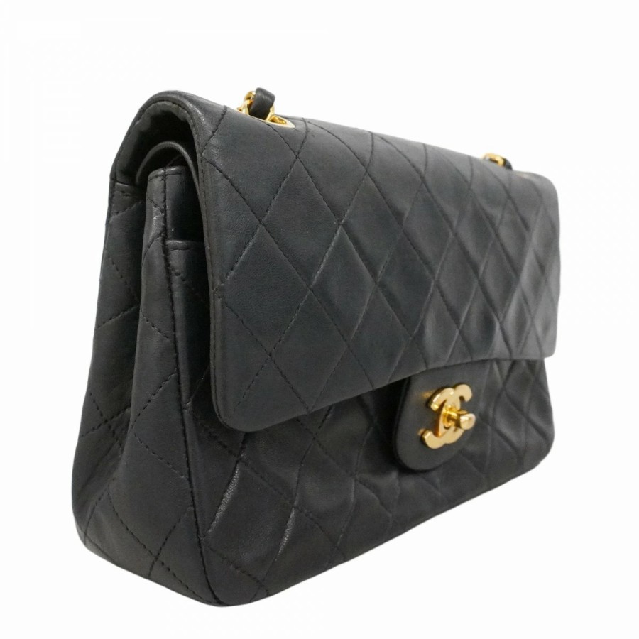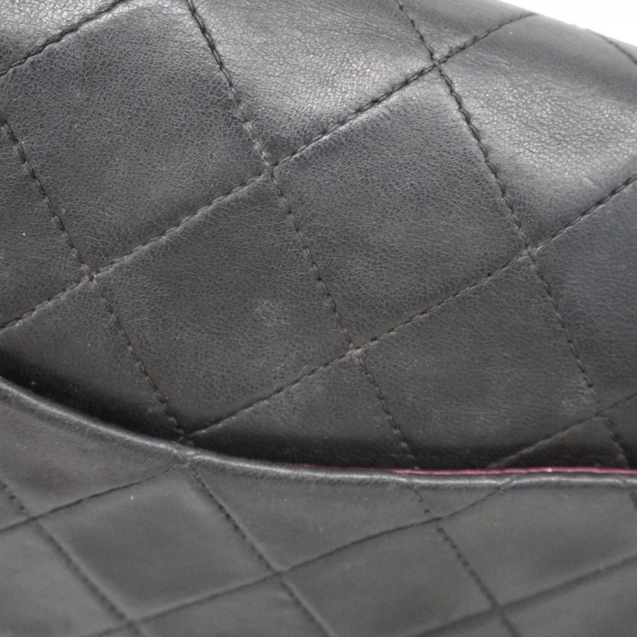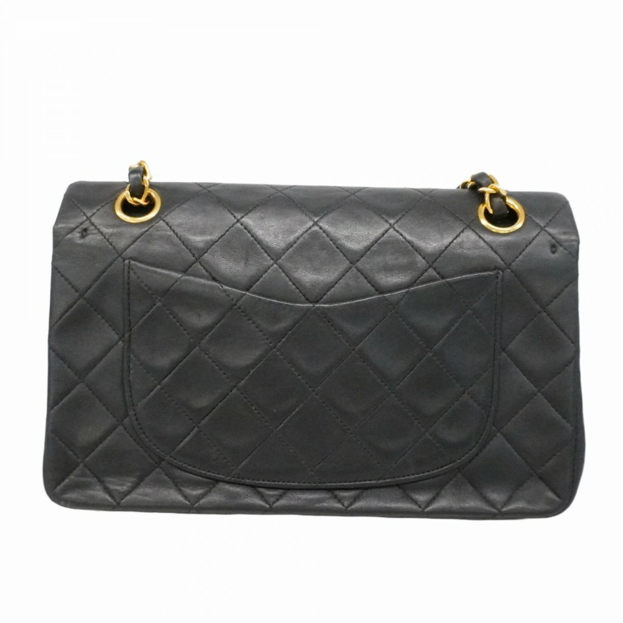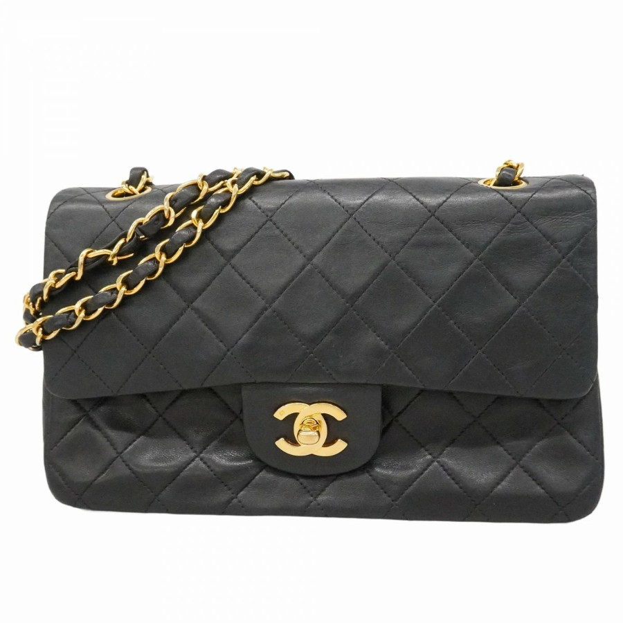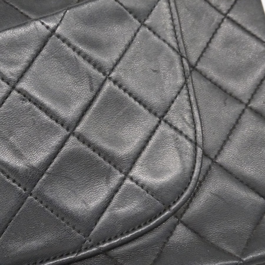 【6dd5374-h】シャネル ショルダーバッグ マトラッセ Wフラップ Wチェーン ラムスキン ブラック ゴールド金具【中古】レディース