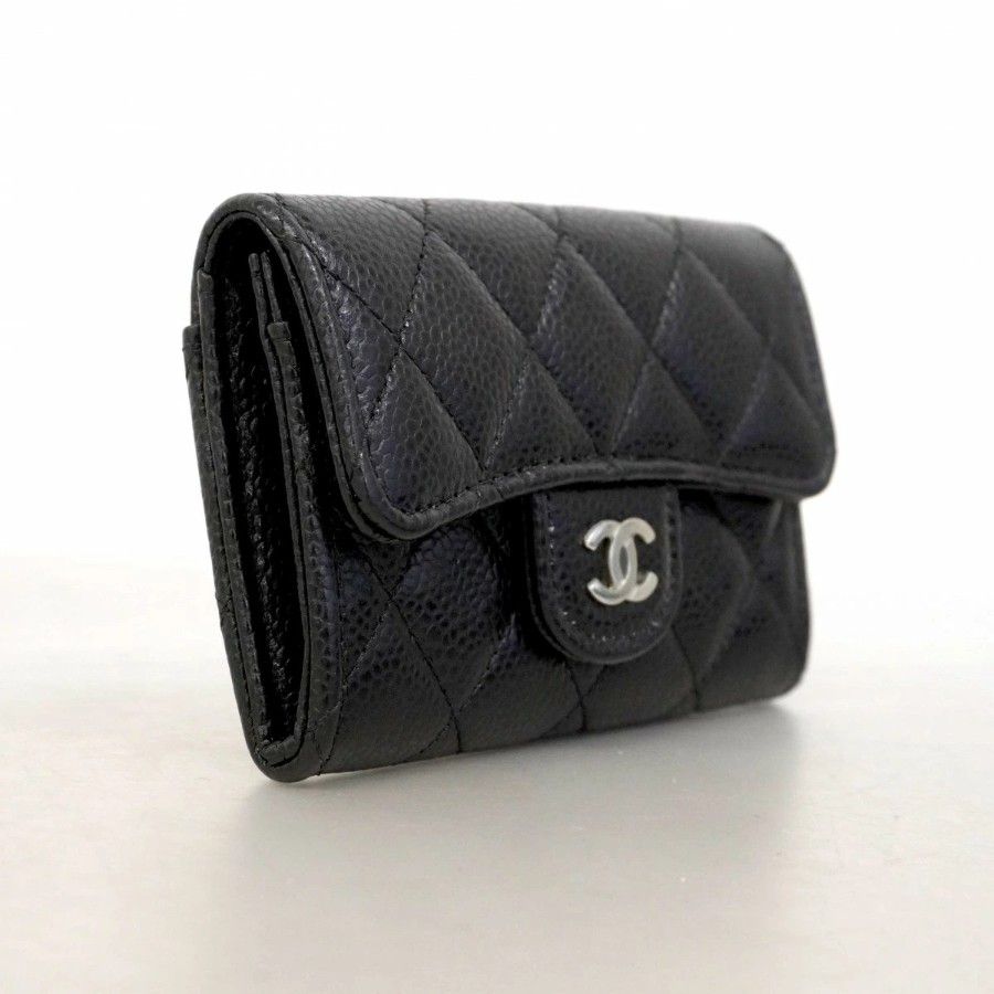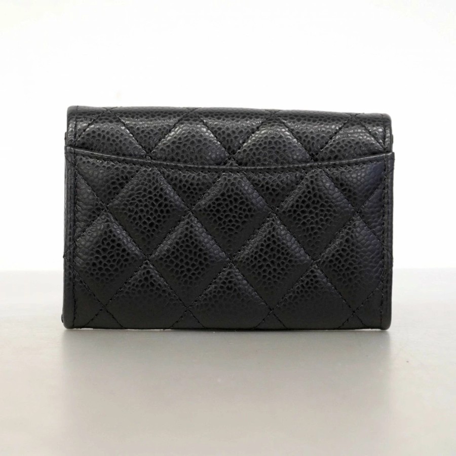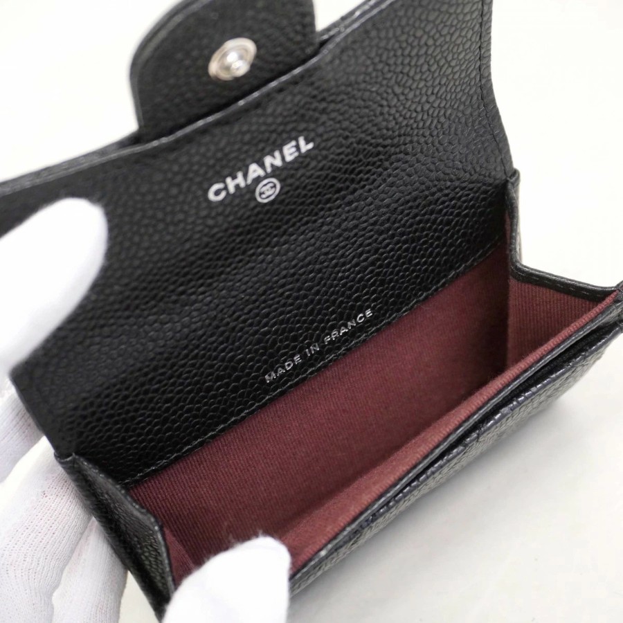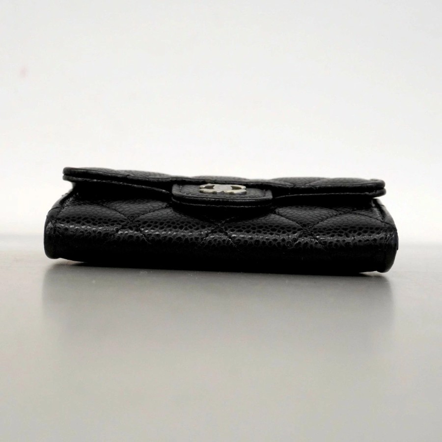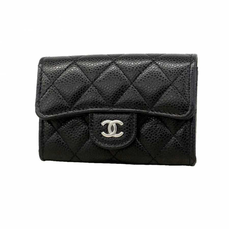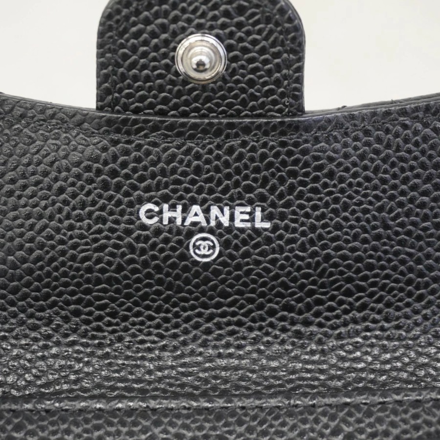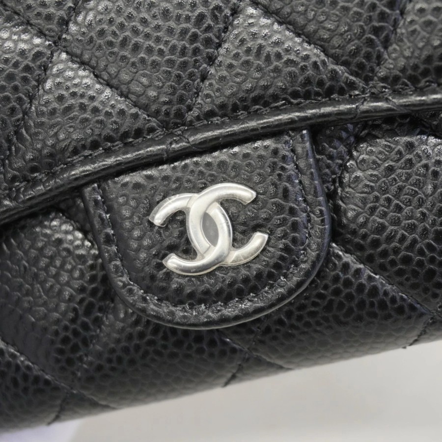 【6de5677-k】シャネル 名刺入れ マトラッセ キャビアスキン ブラック シルバー金具【中古】レディース