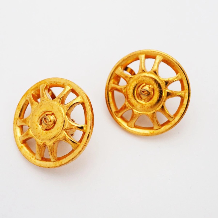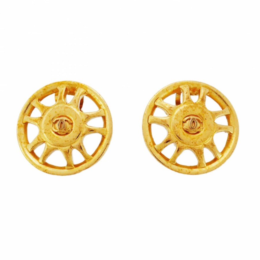 【6jcb0878-k】シャネル イヤリング ヴィンテージ ココマーク 丸型 サークル GPメッキ ゴールド【中古】レディース