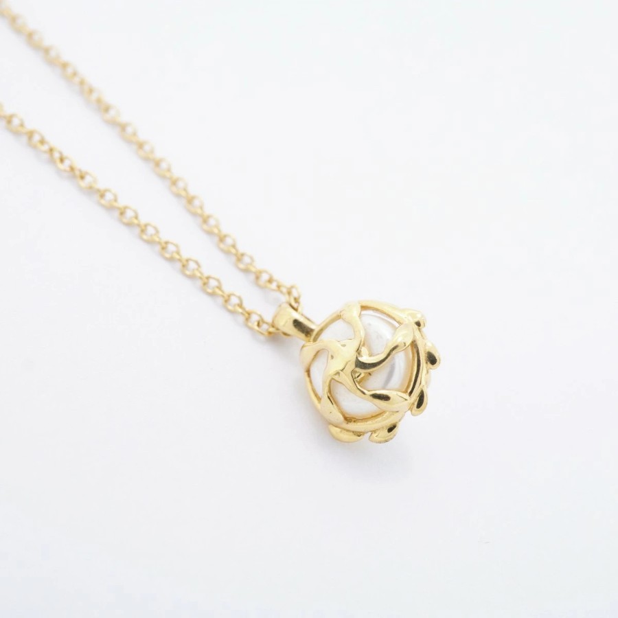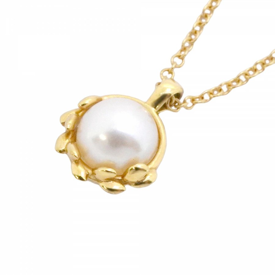 【6jcb1030】ティファニー ネックレス オリーブリーフ K18YG イエローゴールド パール【中古】レディース