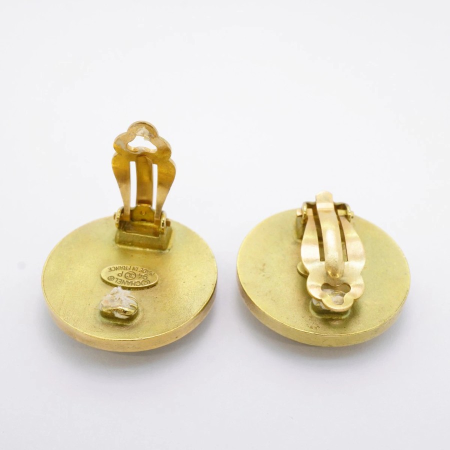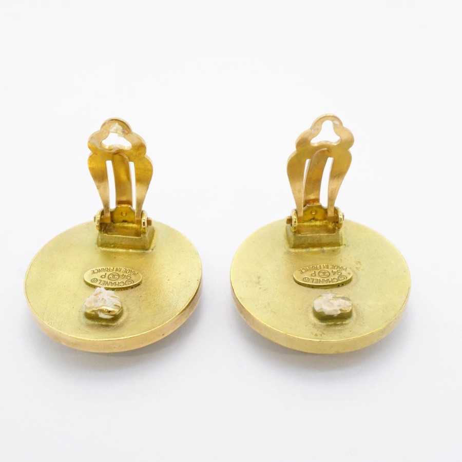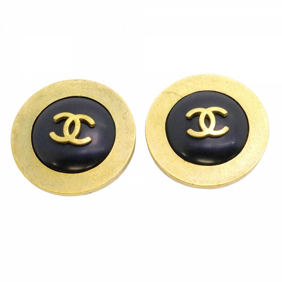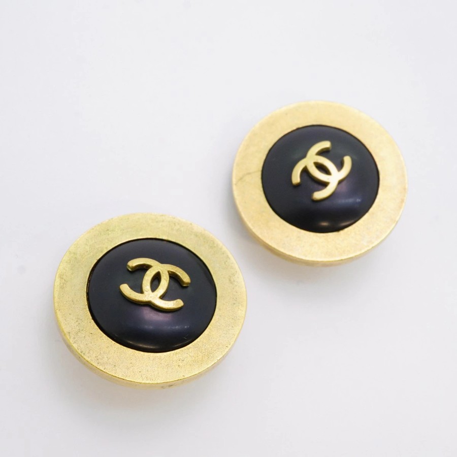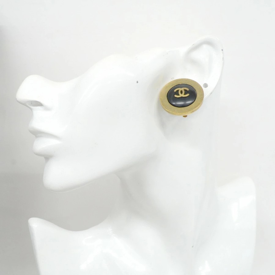 【6jdb0031-k】シャネル イヤリング ヴィンテージ ココマーク 丸型 サークル GPメッキ ゴールド ブラック【中古】レディース