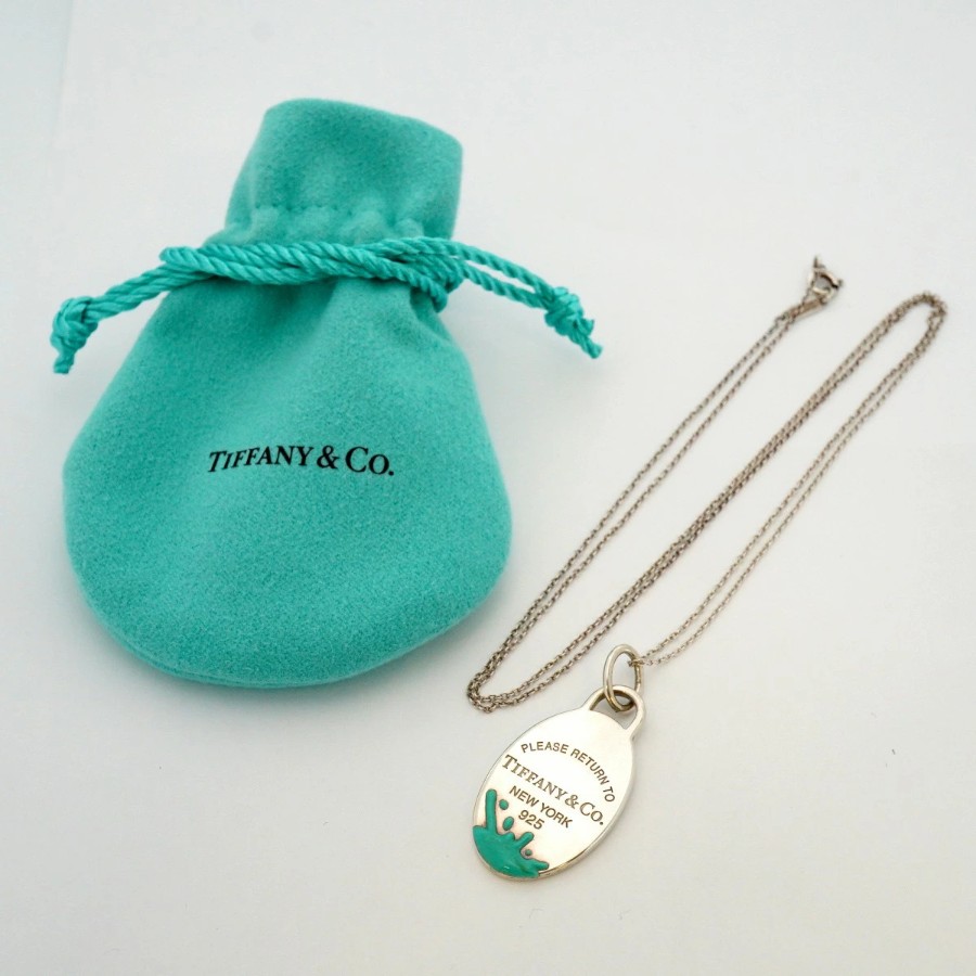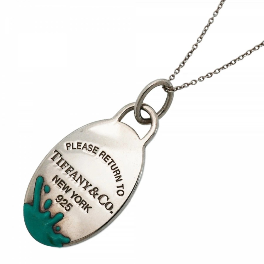 【6jdb0056】ティファニー ネックレス リターントゥ/カラースプラッシュ オーバル シルバー925 ブルー【中古】レディース