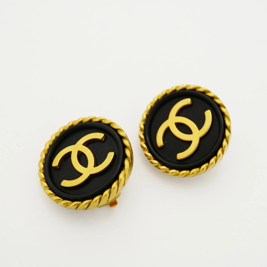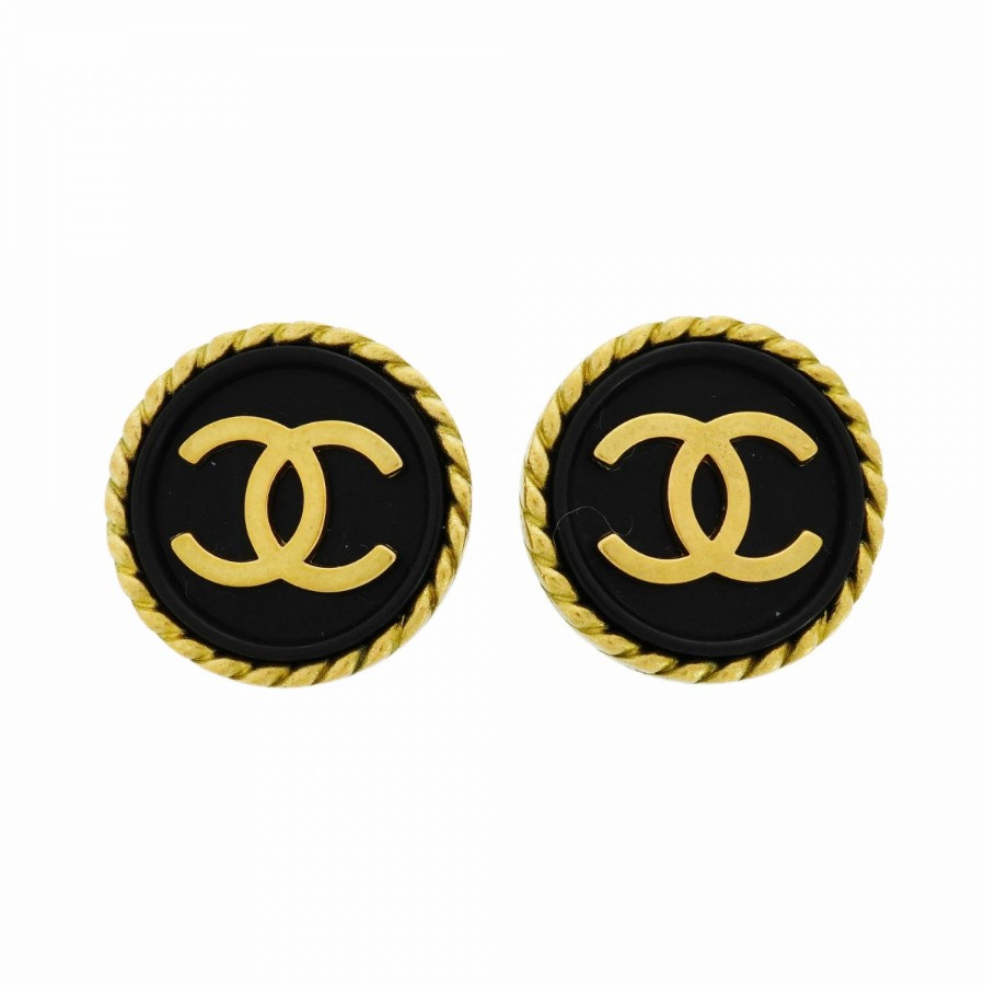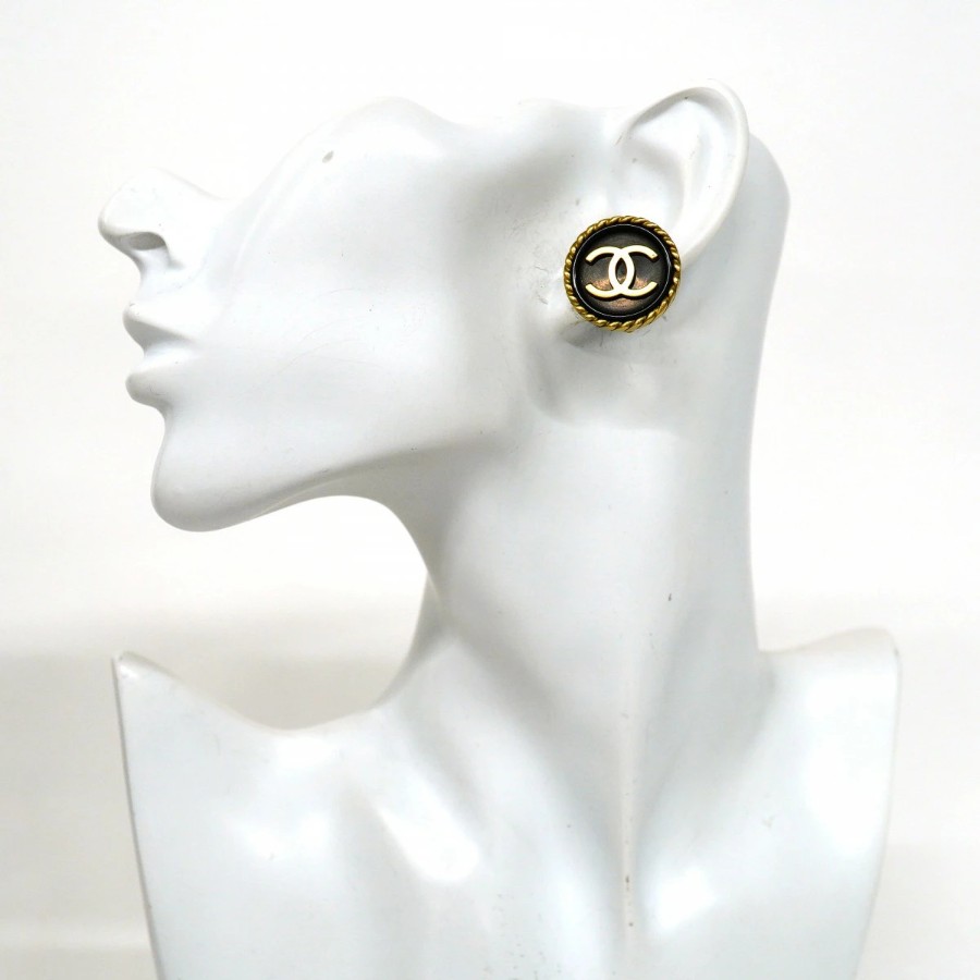【6jdb0079-k】シャネル イヤリング ヴィンテージ ココマーク 丸型 サークル GPメッキ ゴールド ブラック【中古】レディース