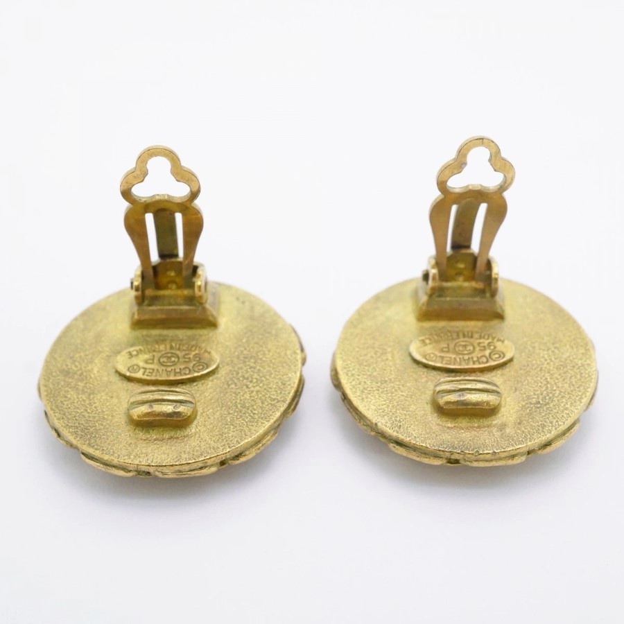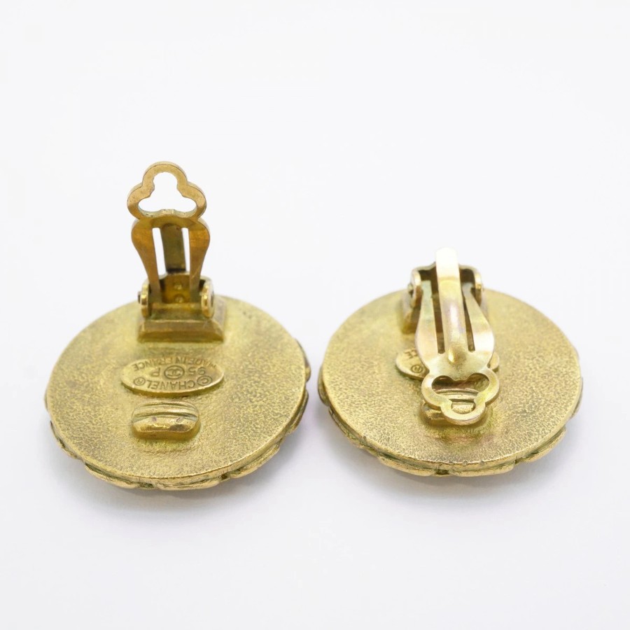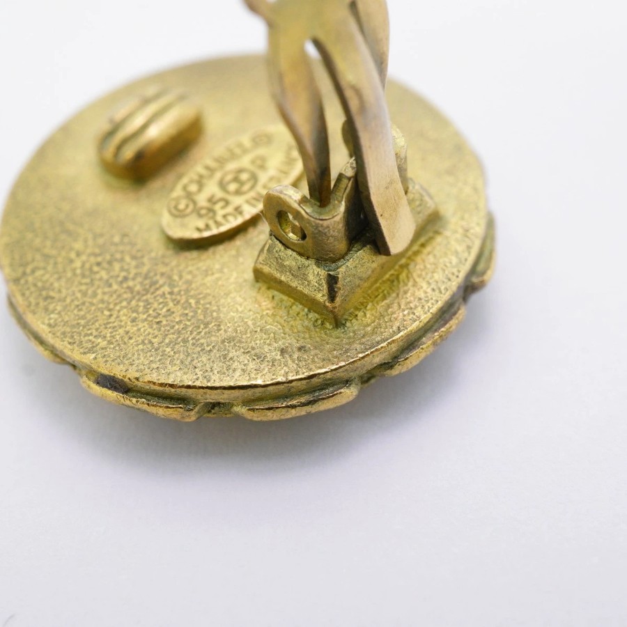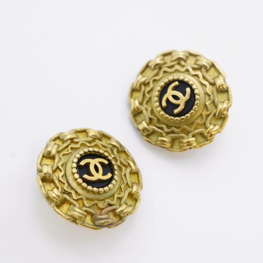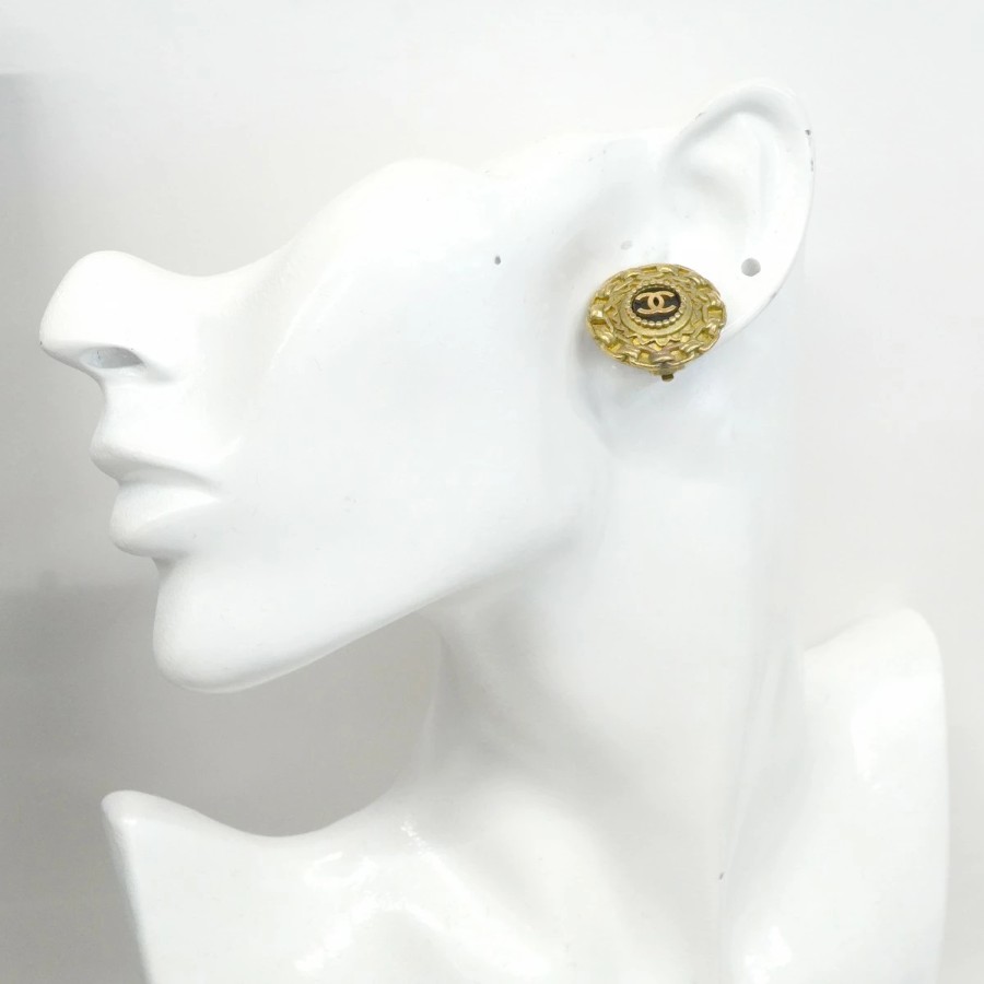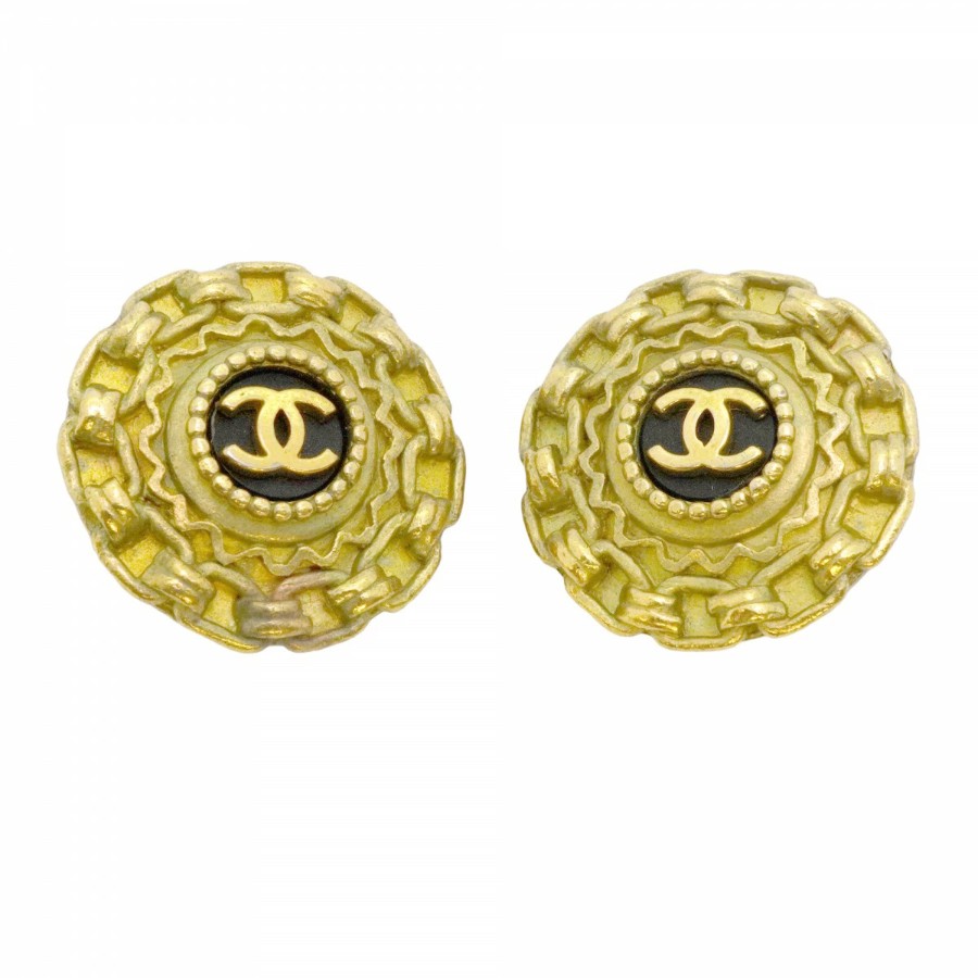 【6jdb0094-k】シャネル イヤリング ヴィンテージ ココマーク 丸型 サークル GPメッキ ゴールド ブラック【中古】レディース