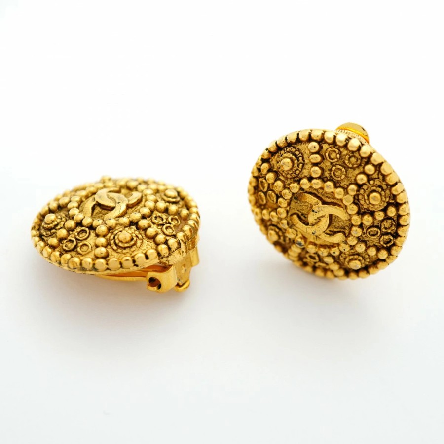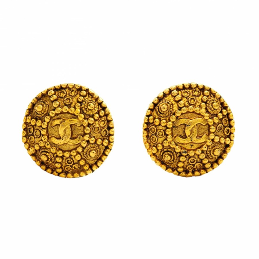【6jdb0110-k】シャネル イヤリング ヴィンテージ ココマーク 丸型 サークル GPメッキ ゴールド【中古】レディース