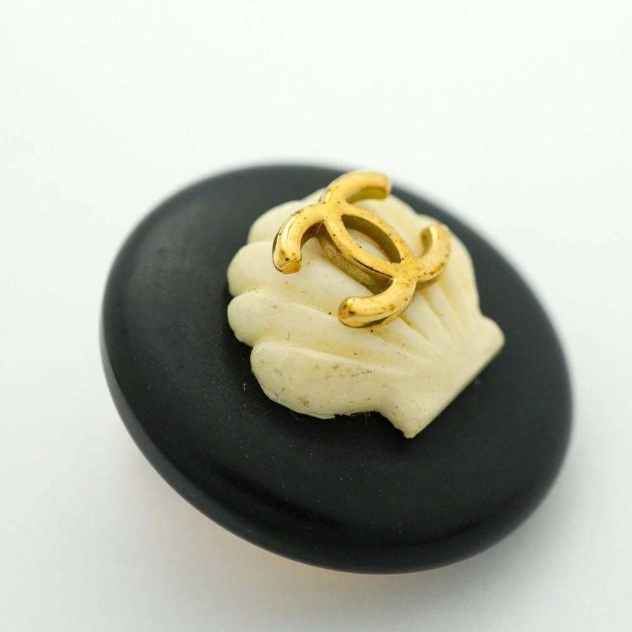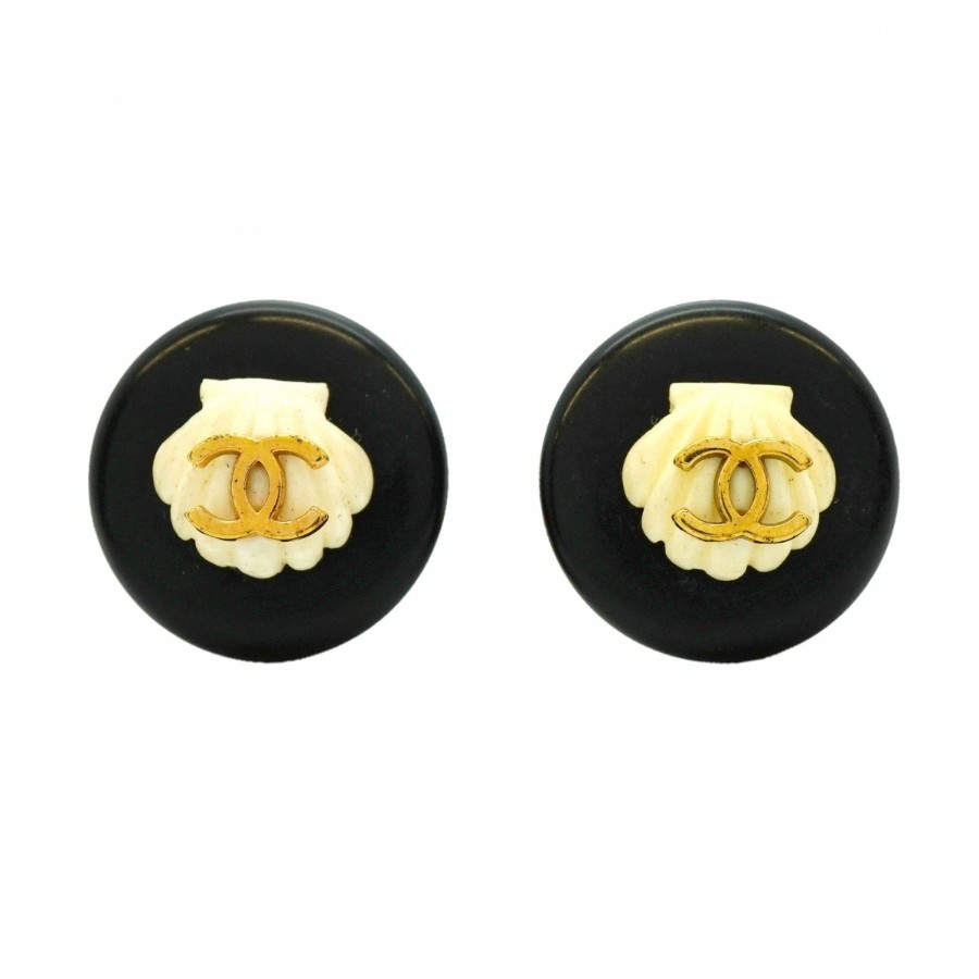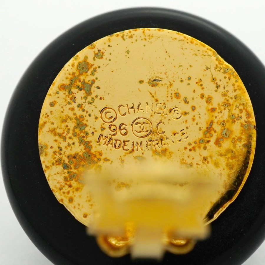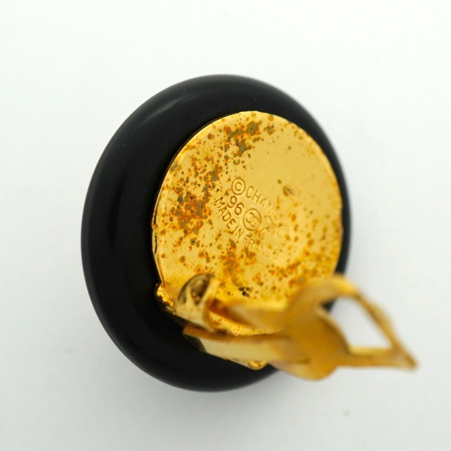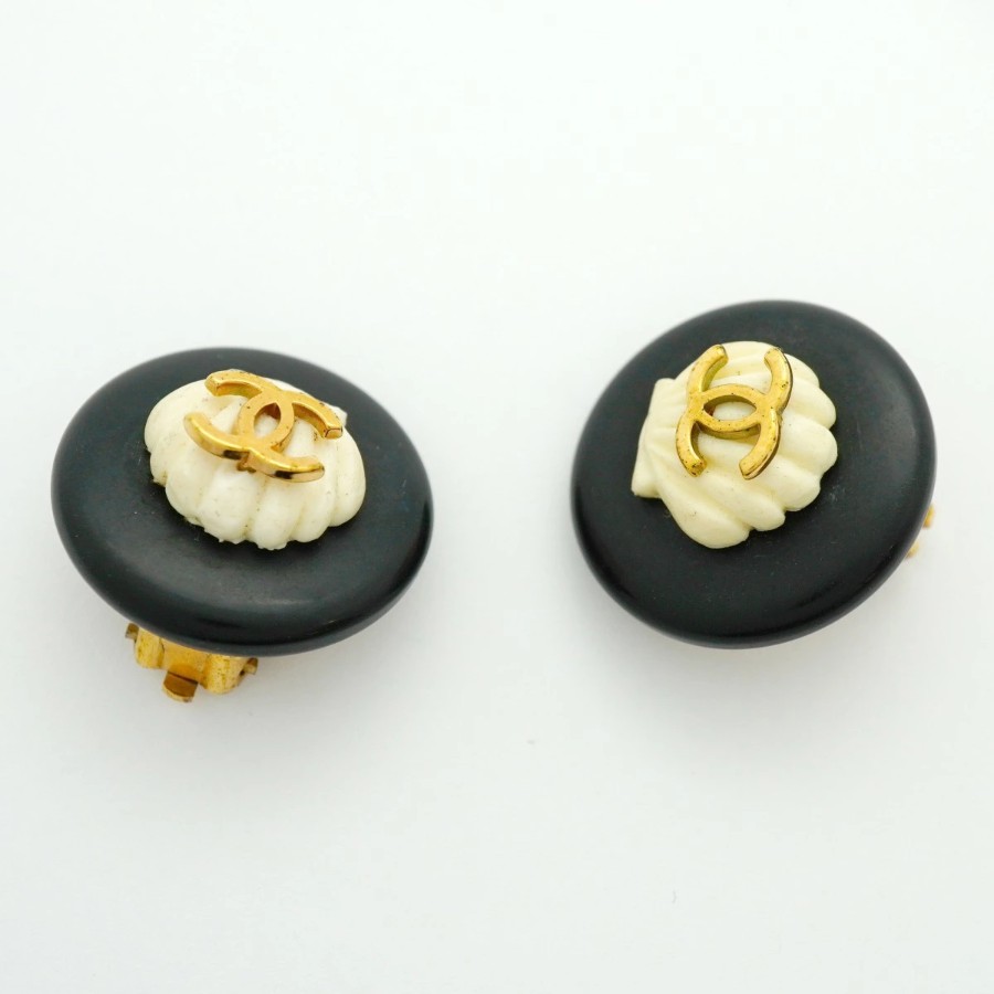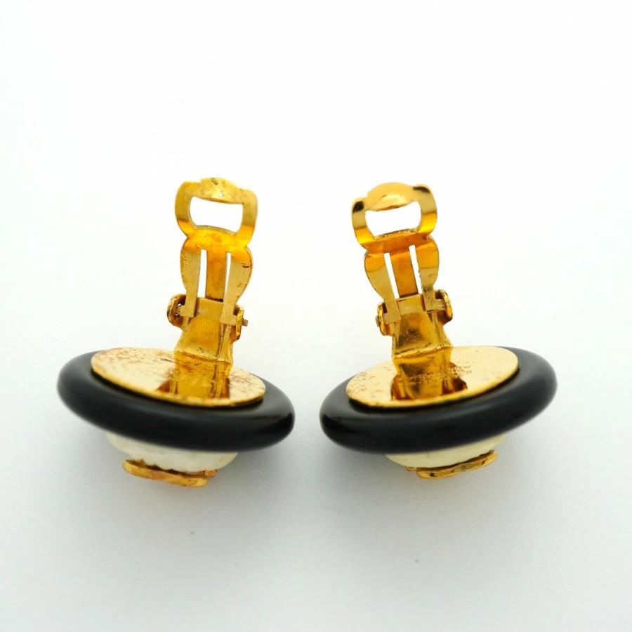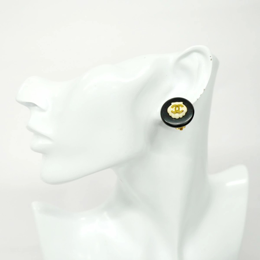 【6jdb0111-k】シャネル イヤリング ヴィンテージ ココマーク 丸型 サークル GPメッキ プラスチック ゴールド ホワイト ブラック【中古】レディース
