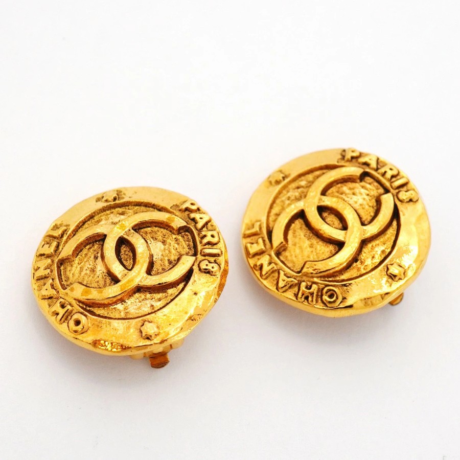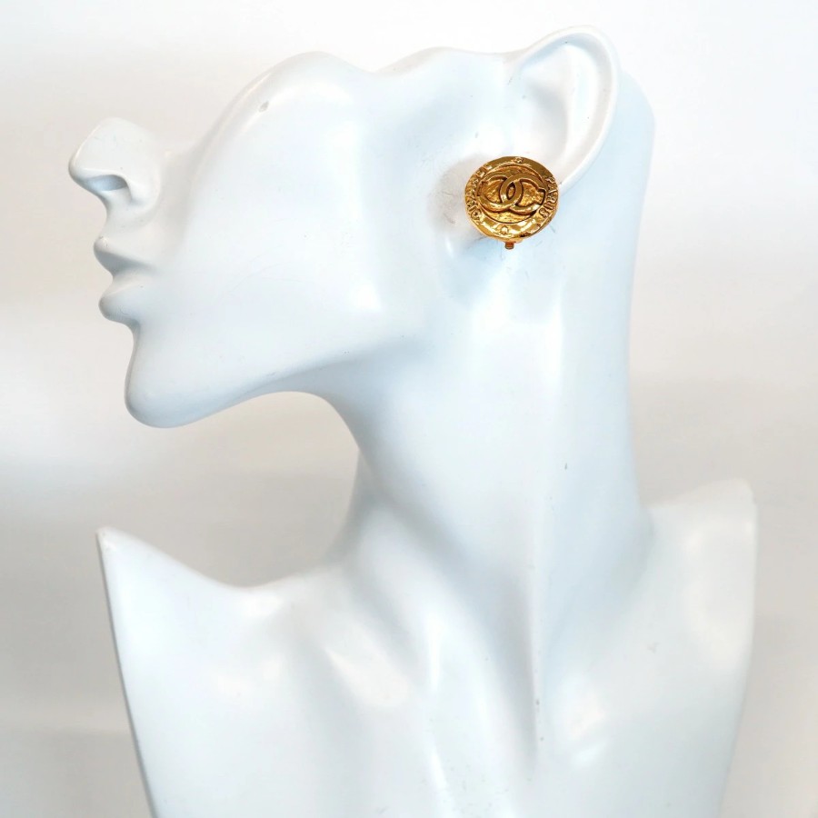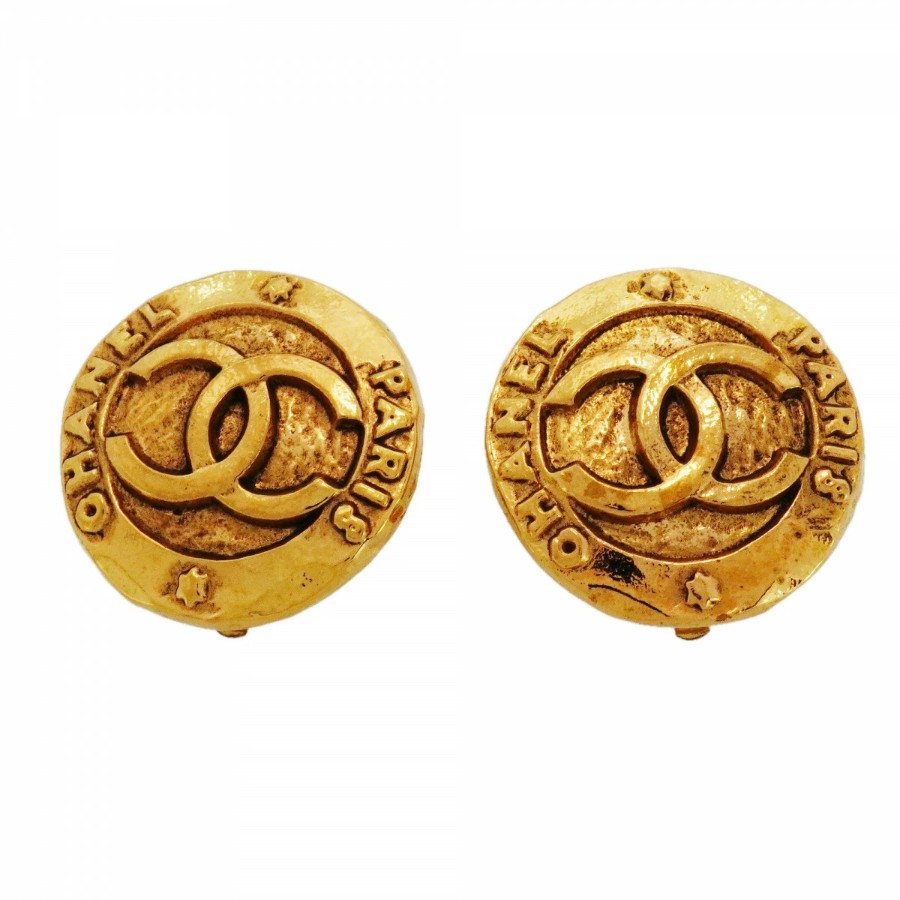 【6jdb0128-k】シャネル イヤリング ヴィンテージ ココマーク 丸型 サークル GPメッキ ゴールド【中古】レディース