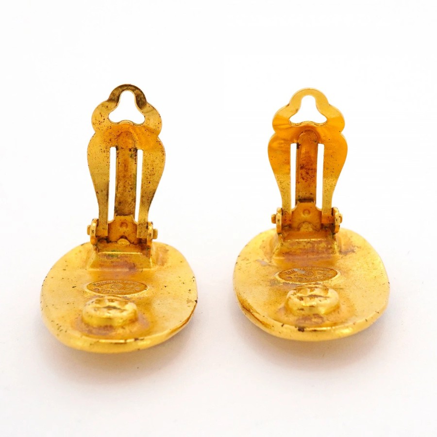 【6jdb0145-k】 Chanel Earrings Vintage Coco Mark Oval GP Plated Gold 【Used】 Women's