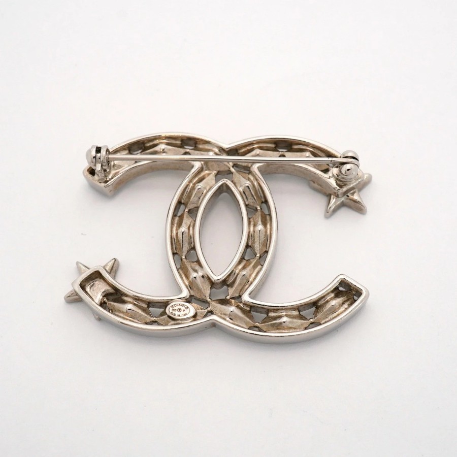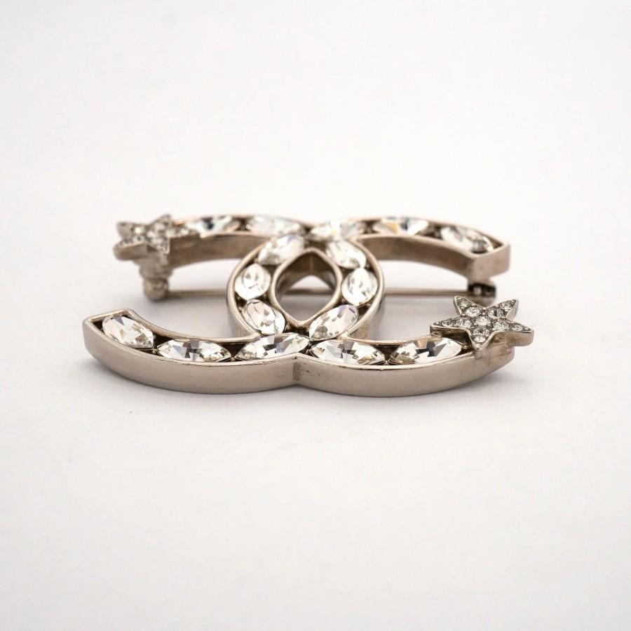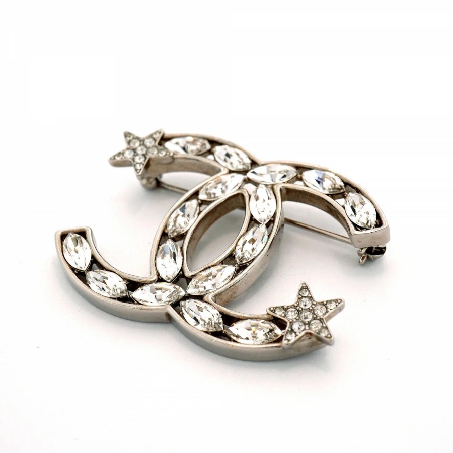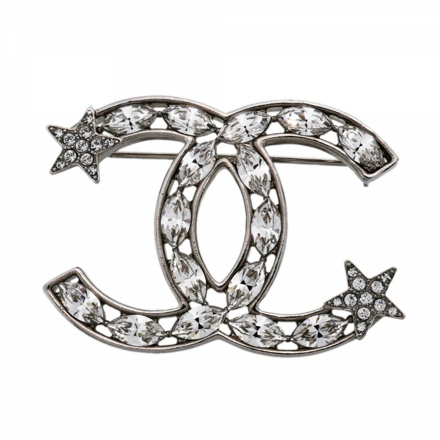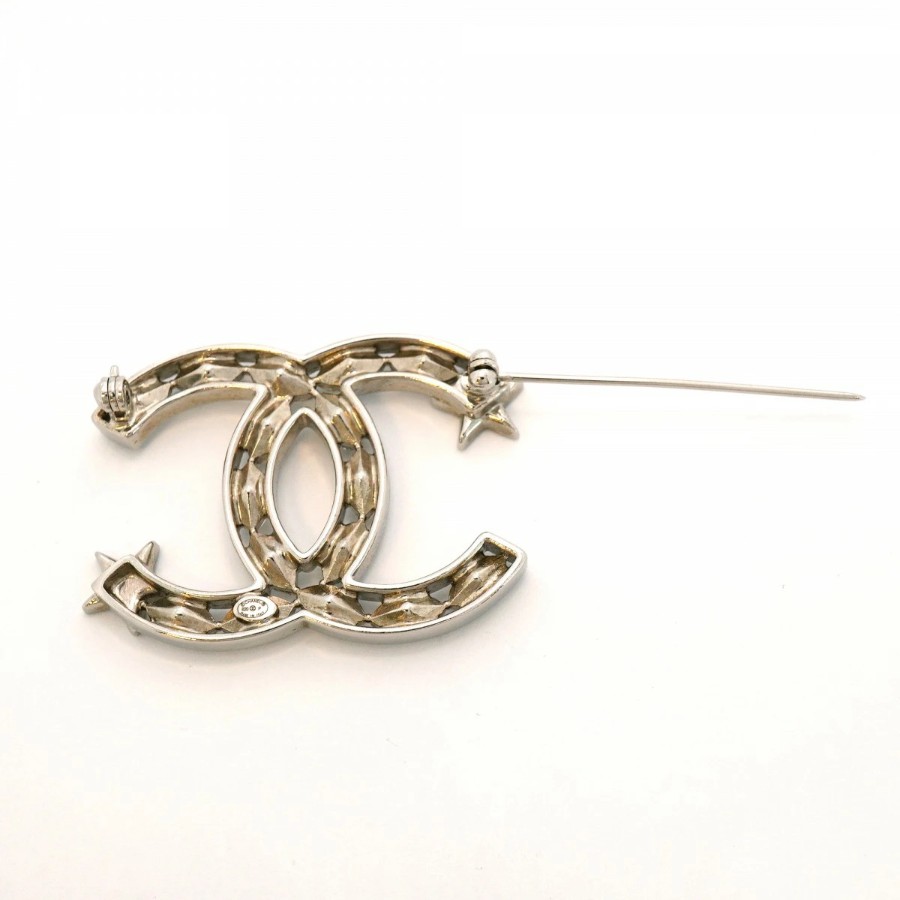 【6jdb0146-k】シャネル ブローチ ココマーク メタル ラインストーン シルバー【中古】レディース