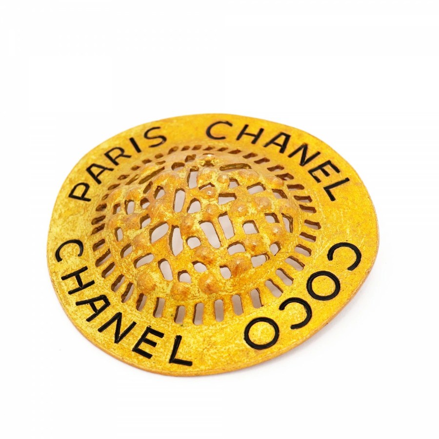 【6jdb0148-k】シャネル ブローチ ヴィンテージ 麦わら帽子モチーフ GPメッキ ゴールド【中古】レディース