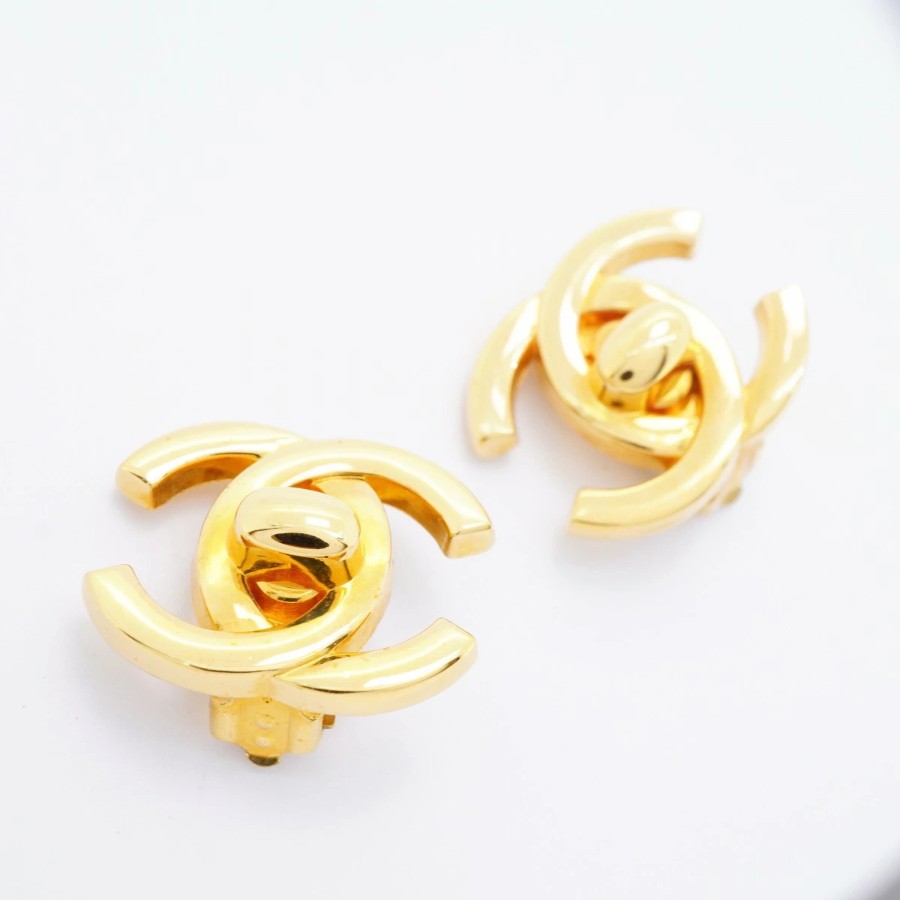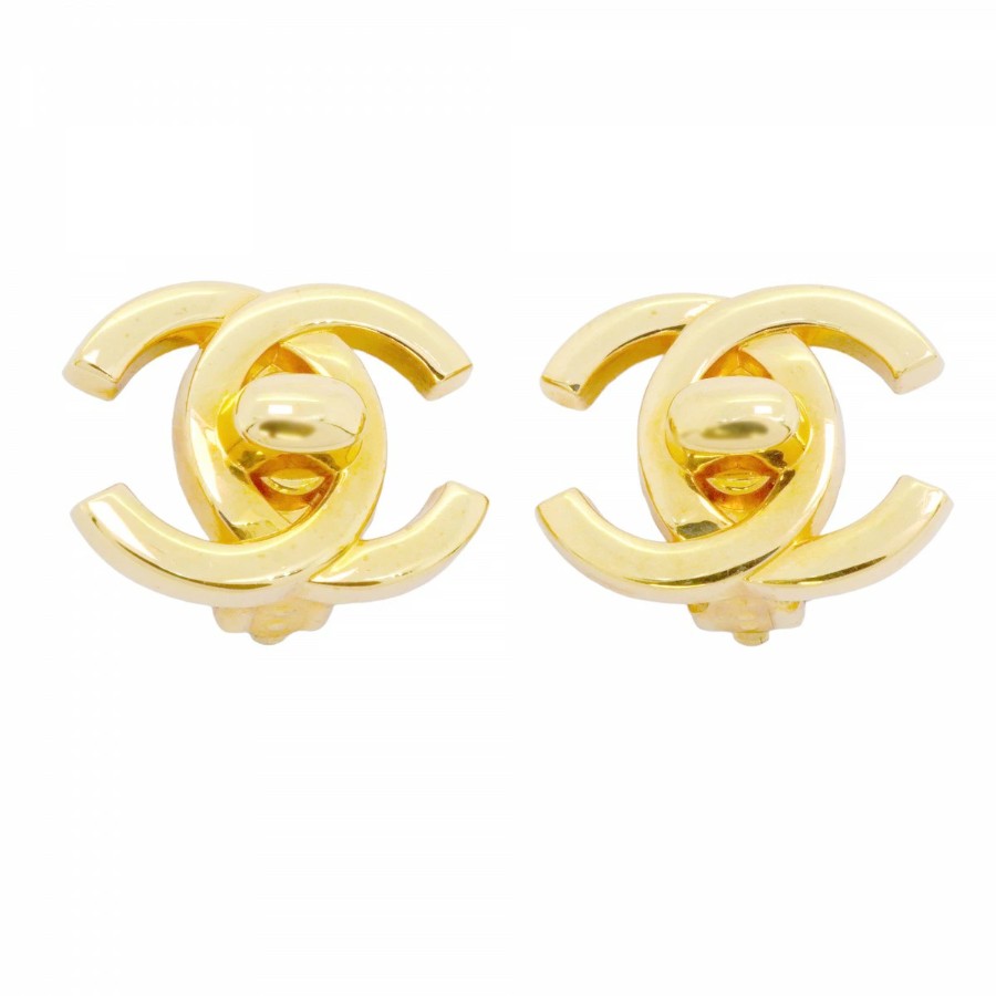 【6jdb0218-k】シャネル イヤリング ヴィンテージ ココマーク ターンロック GPメッキ ゴールド【中古】レディース