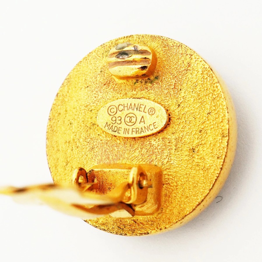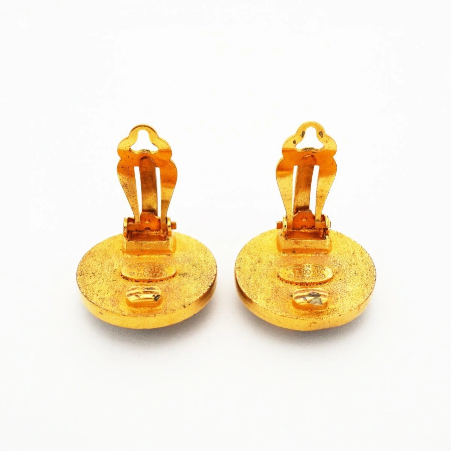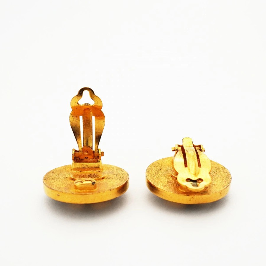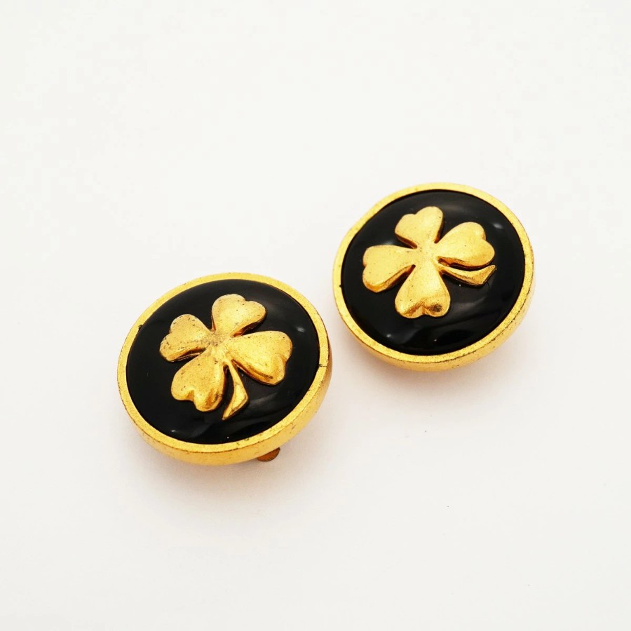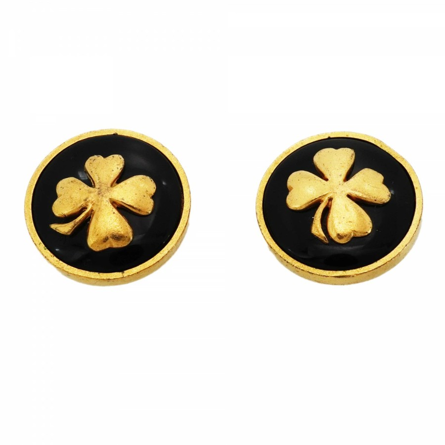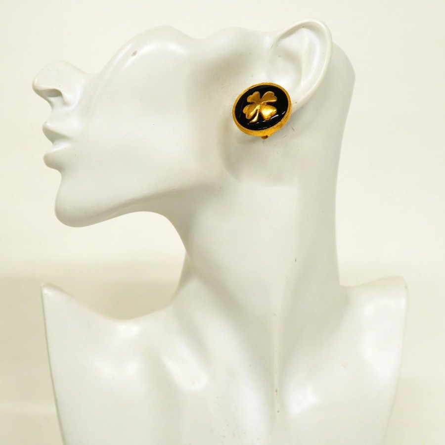 【6jdb0270】シャネル イヤリング ヴィンテージ クローバーモチーフ GPメッキ ゴールド ブラック【中古】レディース