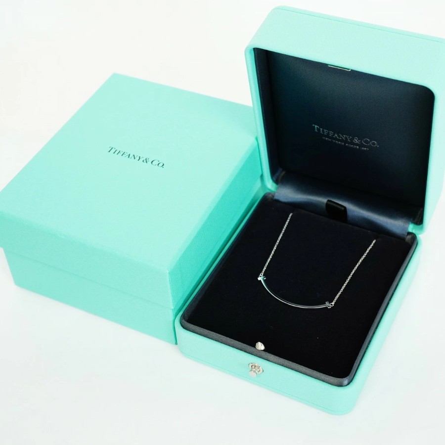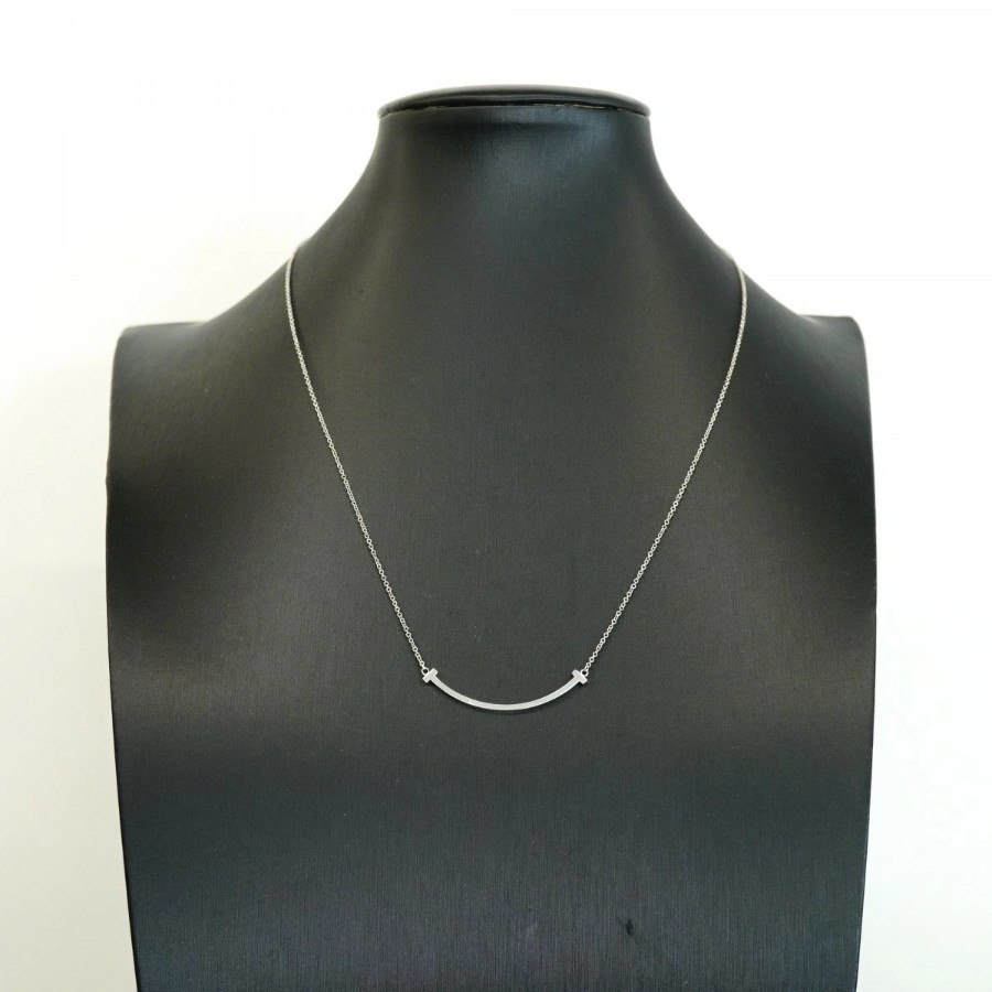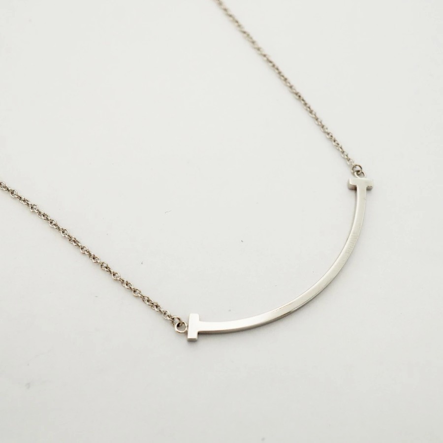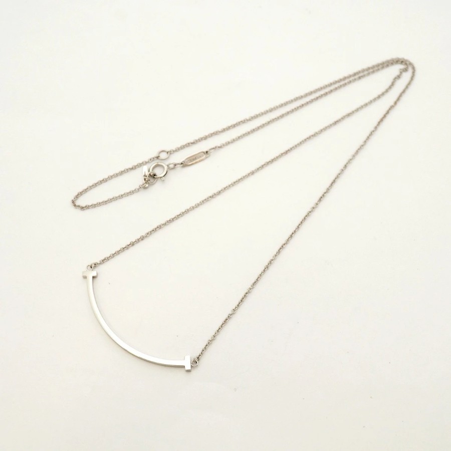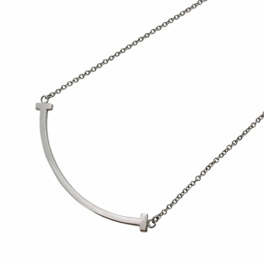 【6jdb0294】ティファニー ネックレス Tスマイル スモール K18WG ホワイトゴールド【中古】レディース