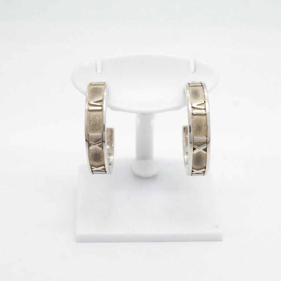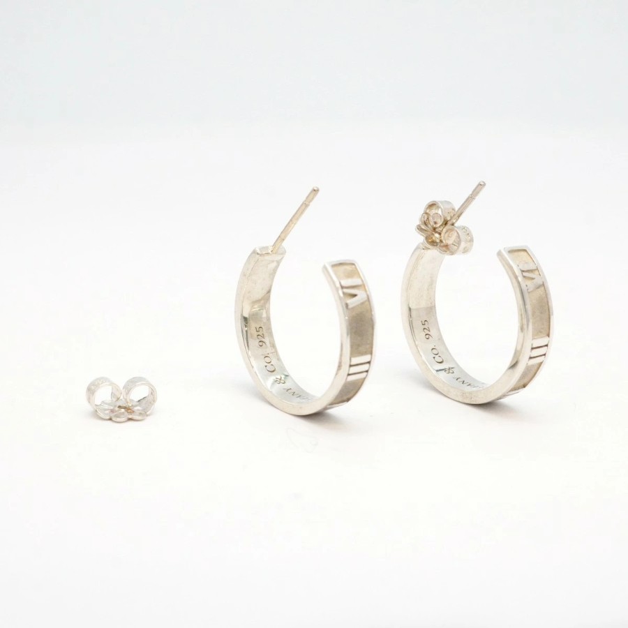 【6jdb0313-k】Tiffany & Co. Atlas Hoop Earrings, Sterling Silver 925 [Used] Women's