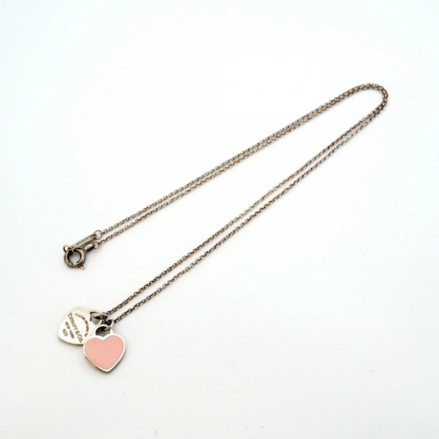 【6jdb0367-k】ティファニー ネックレス ダブルリターントゥハート シルバー925 ピンク【中古】レディース