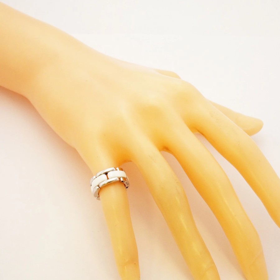 【6jdb0398】Chanel Ring Ultra Collection K18WG White Gold Ceramic White #46【Used】Ladies