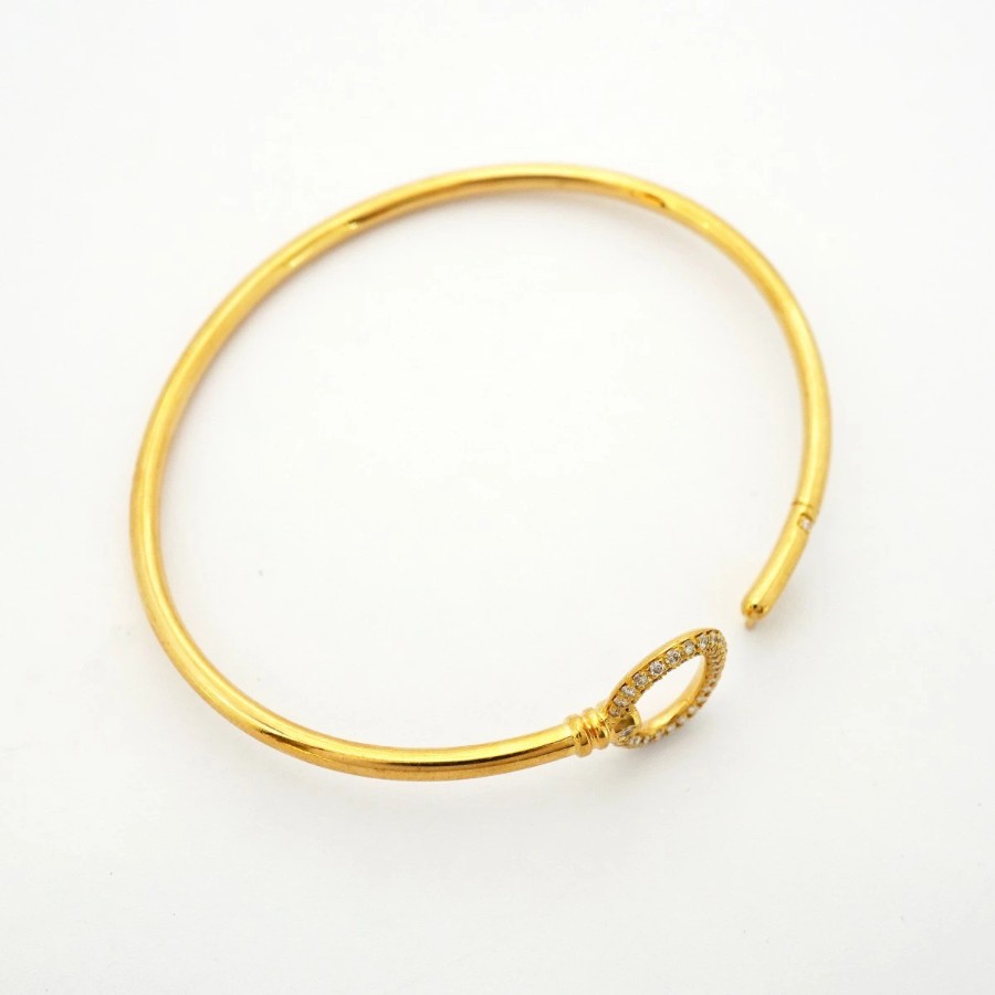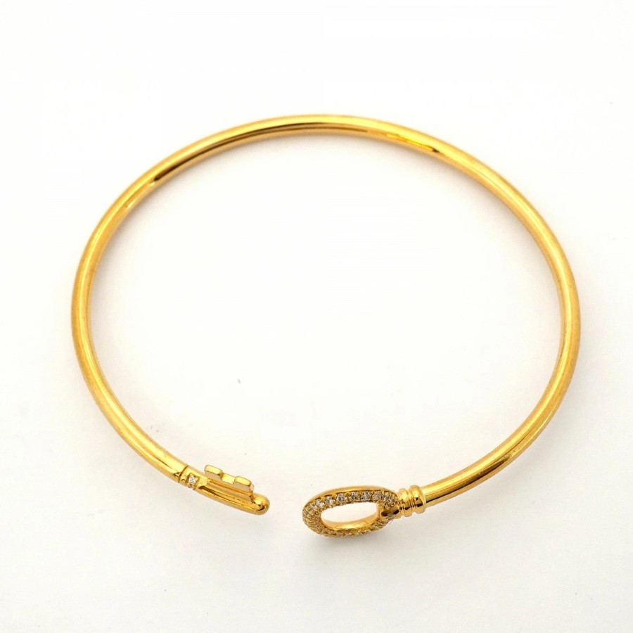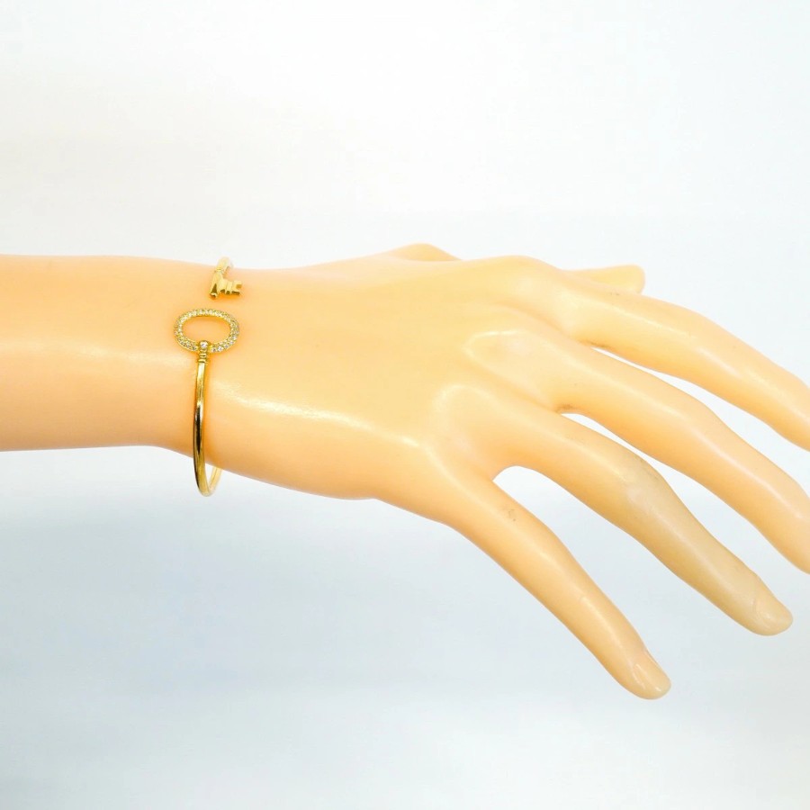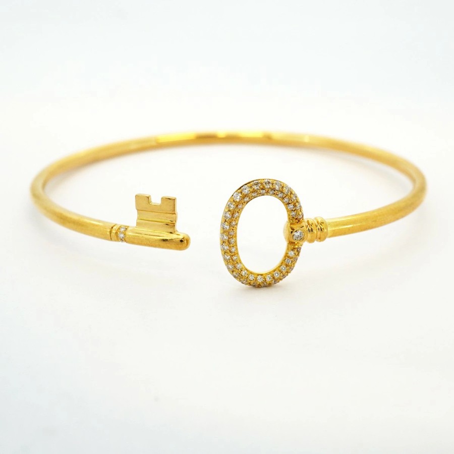 【6jdb0427-29】ティファニー バングル オーバルキー/ワイヤー K18YG イエローゴールド ダイヤモンド【中古】レディース