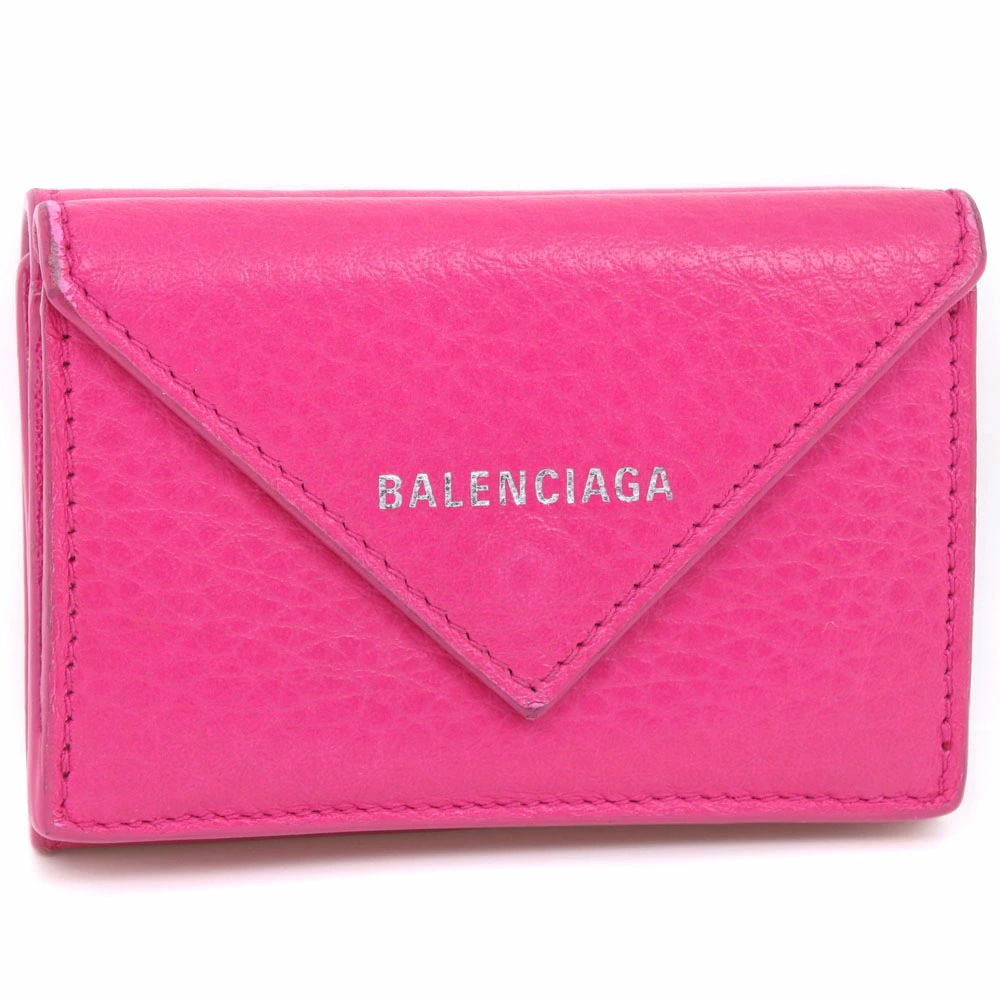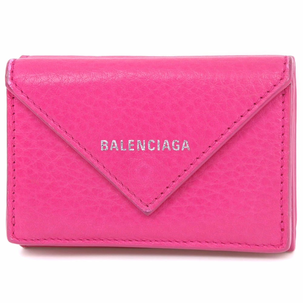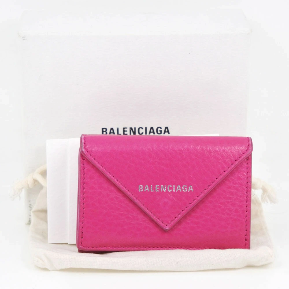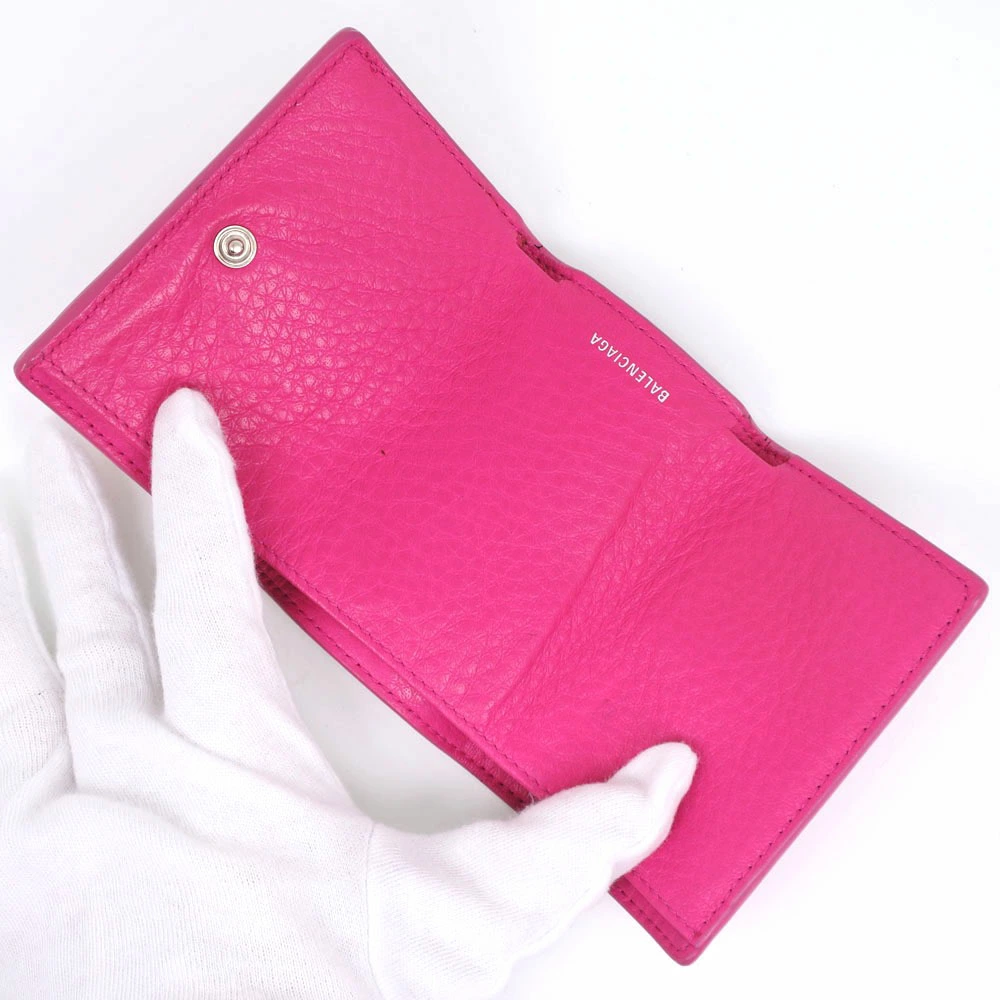 BALENCIAGA Paper Mini 391446 Leather Pink Women's Tri-fold Wallet [Pre-owned]