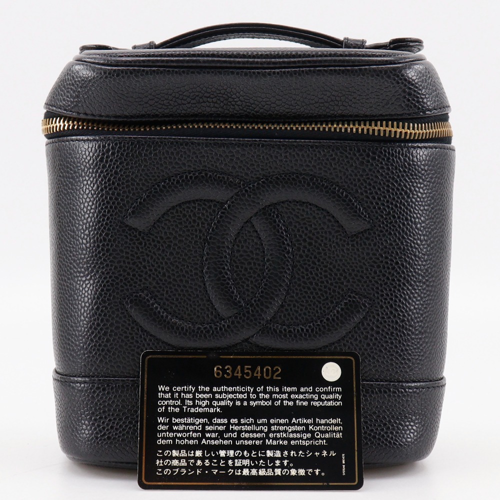 [CHANEL] Chanel Vanity Coco Mark A01998 Leather Black Women's Pouch [Pre-owned]