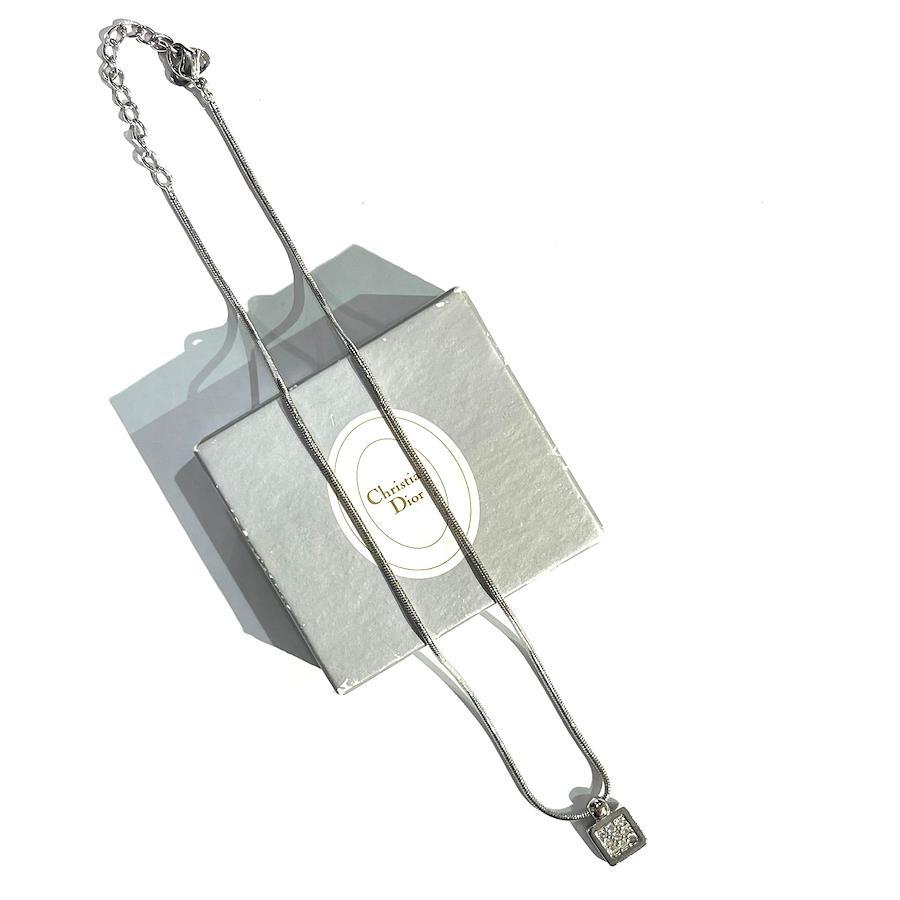 洗練された輝きを放つ【DIOR ディオール】のリバーシブルネックレス。1cmのキューブ型モチーフは、片面に立体的な「DIOR」ロゴ、もう一面には繊細なラインストーンをあしらったデザイン。表情を変えてお楽しみいただける2WAY仕様です。