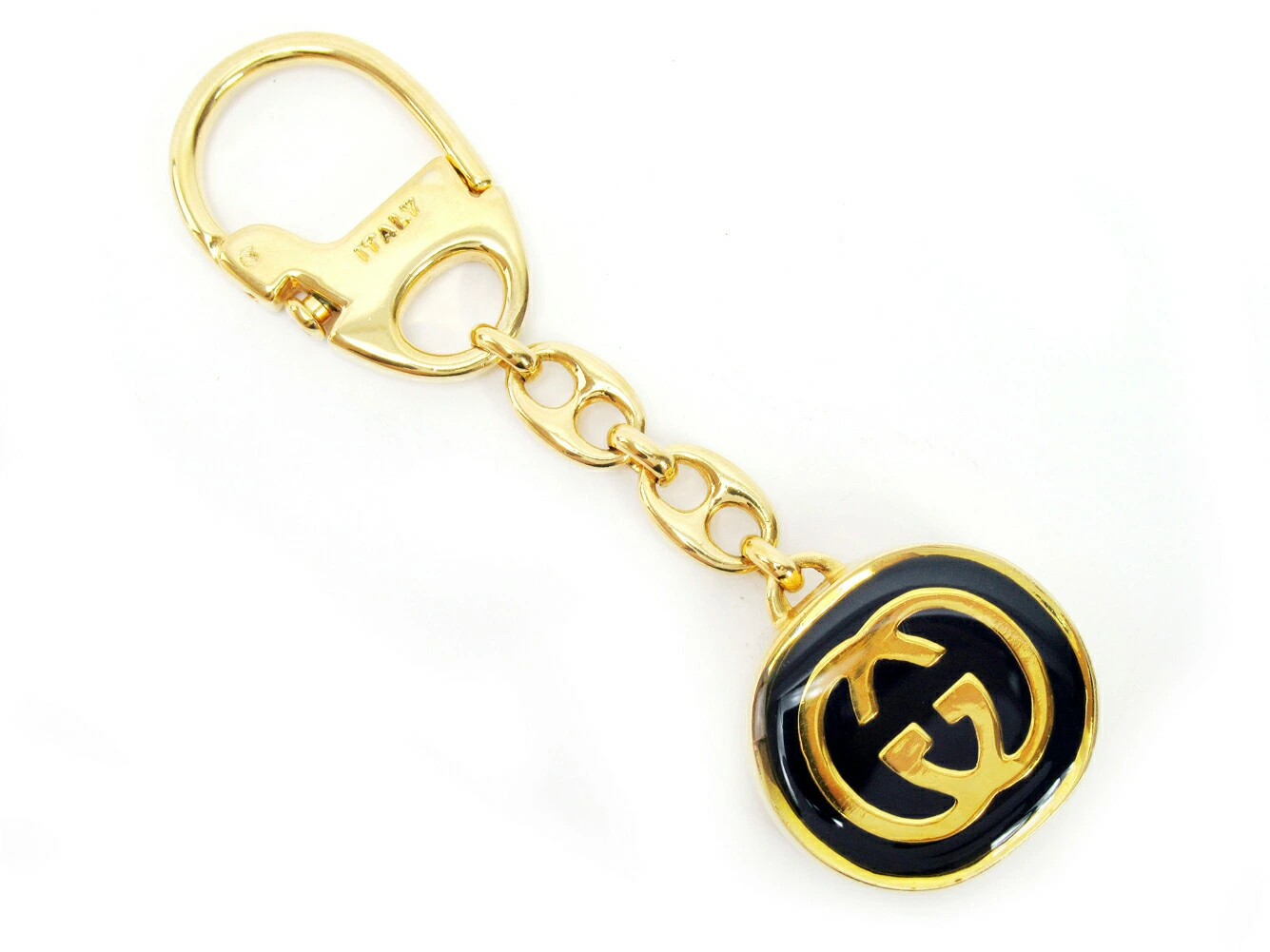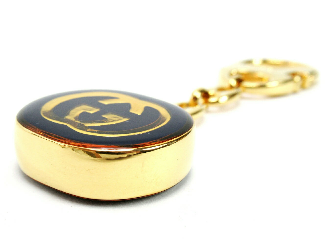 [24% OFF Coupon] Gucci Interlocking Key Ring, Gold and Navy, Men's, Pre-owned