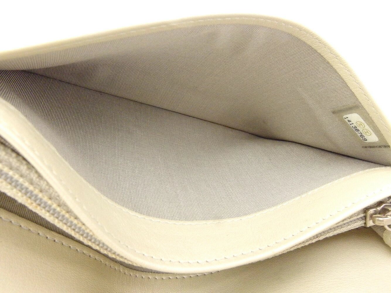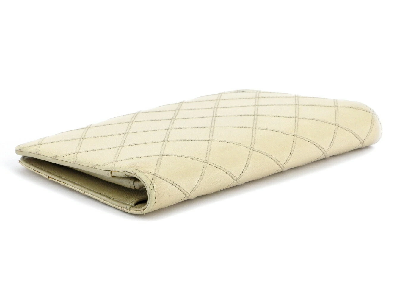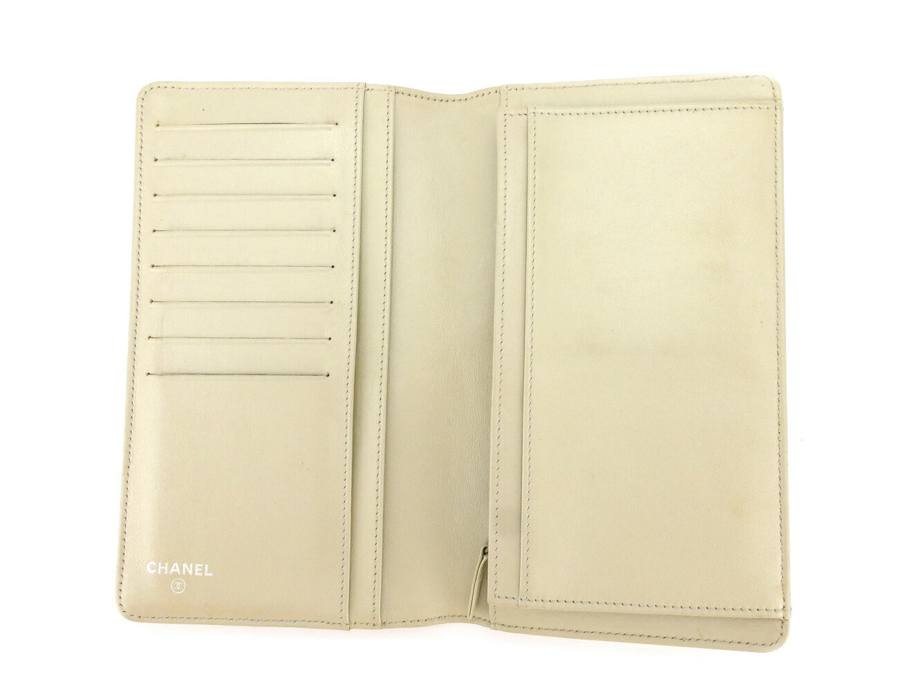 [24% OFF Coupon] Pre-owned Chanel Bicolor Double-Stitched Long Wallet in Beige and Silver.