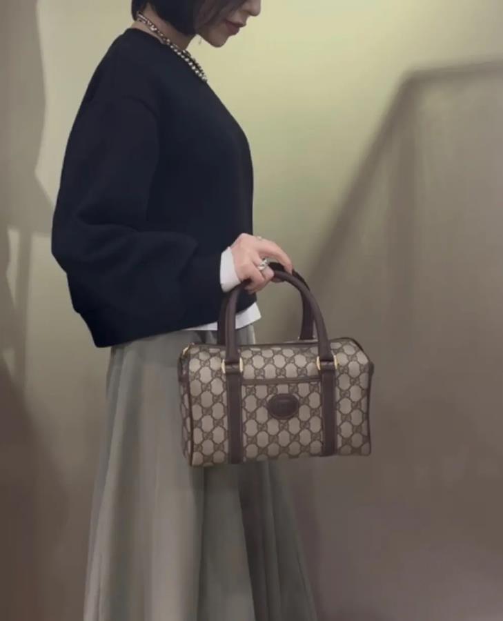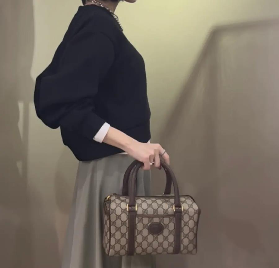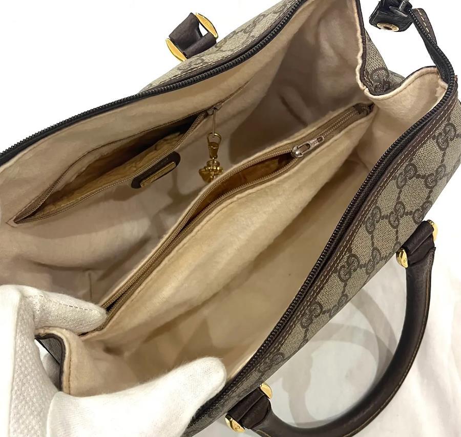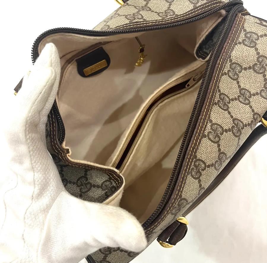 ・人気のスクエアボストン型・小ぶりでもマチがあり収納力◎・年代を問わず使える定番GGデザイン・初めてのヴィンテージグッチにもおすすめ