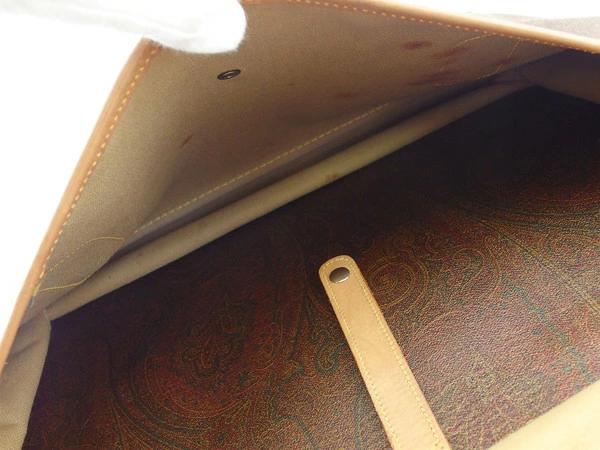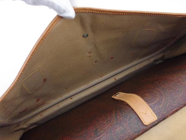 | コンディション | 全体の状態詳細:大きなダメージもなく、まだまだご使用いただけます。 外側:パイピングレザー(スレ、汚れ、傷、変色箇所)、開閉ベルト(レザー部分:ヒビ、ヨレ、変色箇所、縁にスレ、シミ / 金具部分:メッキハゲ、くすみ、傷)、持ち手(しみ汚れ、変色、傷、スレ)、ネームタグ(ヒビ割れ、ヨレ、変形、しみ汚れ)あり。 内側:裏地(茶系のシミ汚れ箇所多数)あり。 その他、中古品のため 目立たない 傷 汚れ などの一般的使用感があります。 |