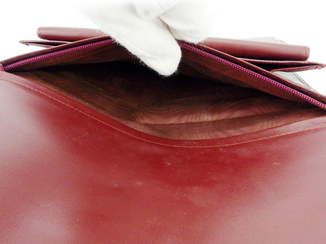 | コンディション | 全体の状態詳細:開口部ホック破損(開閉注意)あり。その他 スレ&汚れ(内側&ポケットもあり) 傷 角スレ シミ(内側) 金具傷 キレ小(ファスナーポケット上部端1ヶ所) 押し跡(正面数ヶ所) 粉ふき(ファスナーポケット) などの使用感があります。 |
