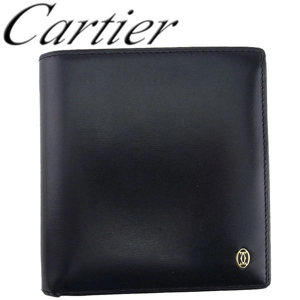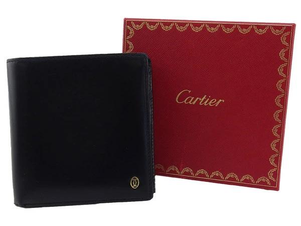 [Rakuten Fashion THE SALE ★ Up to 50% Off] Cartier Bi-fold Wallet, Black and Gold, Men's, Pre-owned, High-End, Vintage