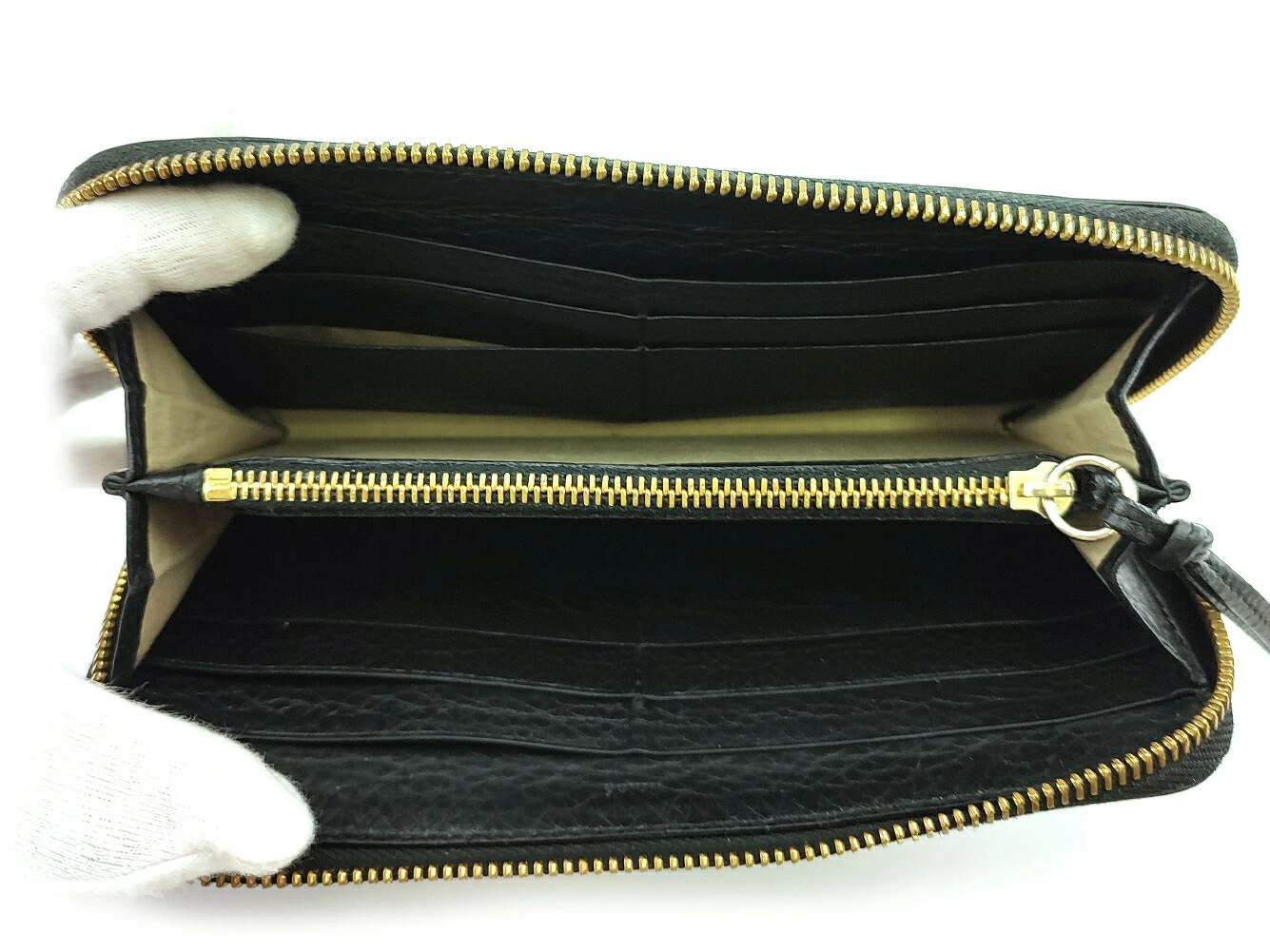 | コンディション | 全体の状態詳細:まだまだ十分にお使いいただけます。 社外リペア跡(スレ色着色)。小銭入れに、スレ&黒ずみあり。その他 スレ&汚れ(札入れ&カード入れ&ポケットもあり) 角スレ 金具傷・ハゲ コバヒビ割れ(ファスナープル革) ベタつき(下一部) などの使用感があります。 |