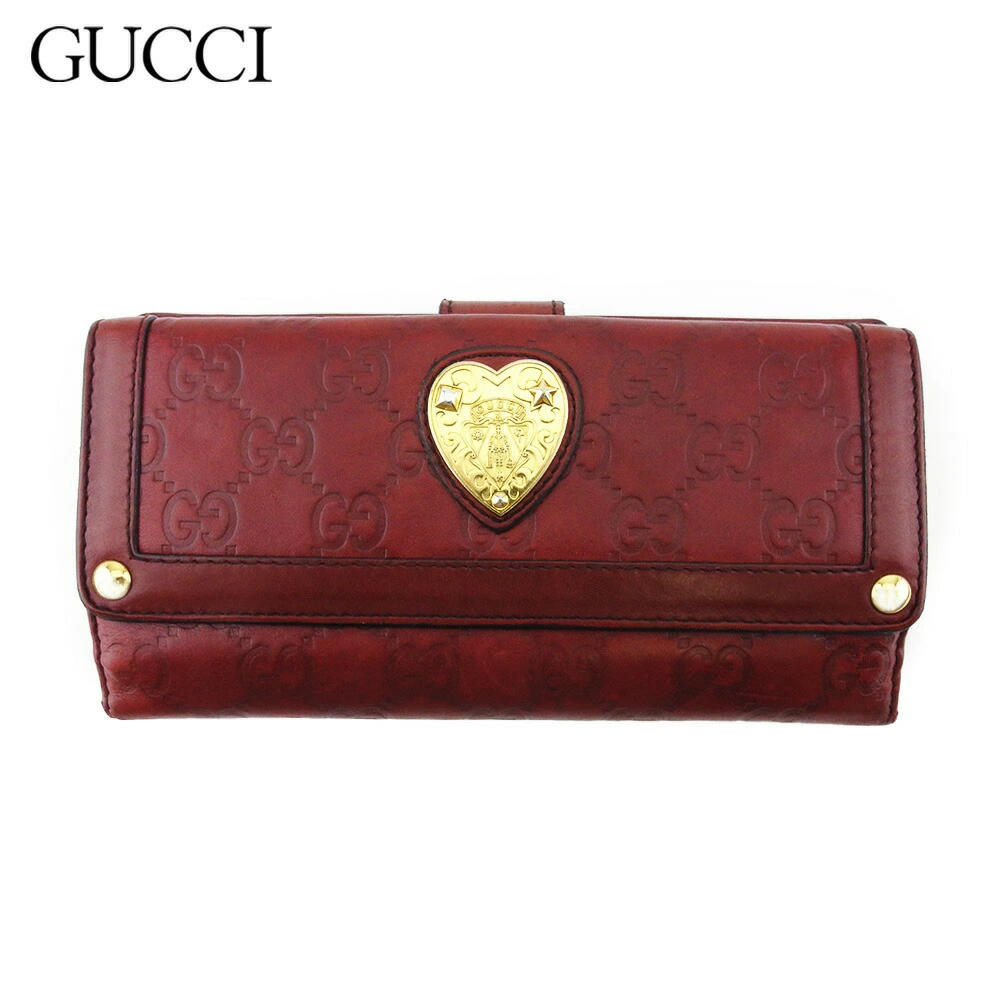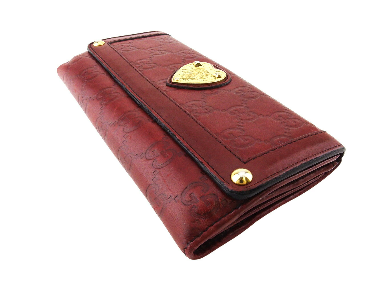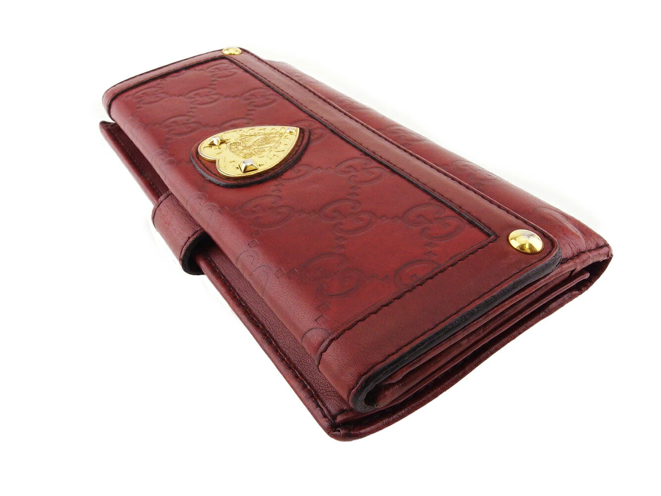 [Rakuten Fashion THE SALE ★ Up to 50% Off] Gucci Long Wallet, Guccissima Heart Crest, Hysteria, Bordeaux, Gold, Women's, Pre-owned, High-End Brand, Vintage