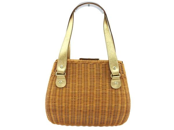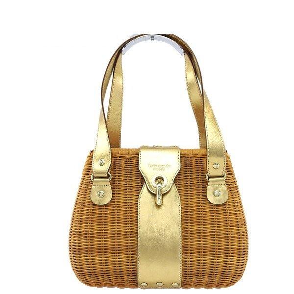 [Rakuten Fashion THE SALE ★ Up to 50% Off] Kate Spade Handbag with Logo and Floral Interior in Beige and Gold. Pre-owned. Women's. Vintage Kate Spade.