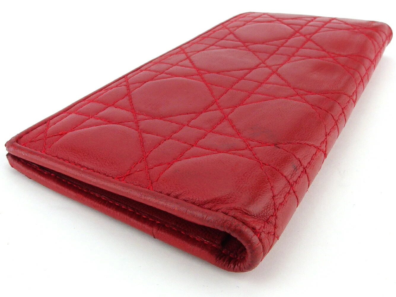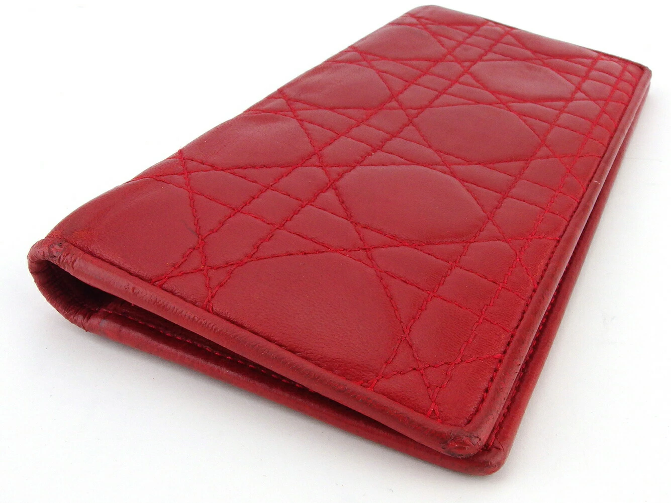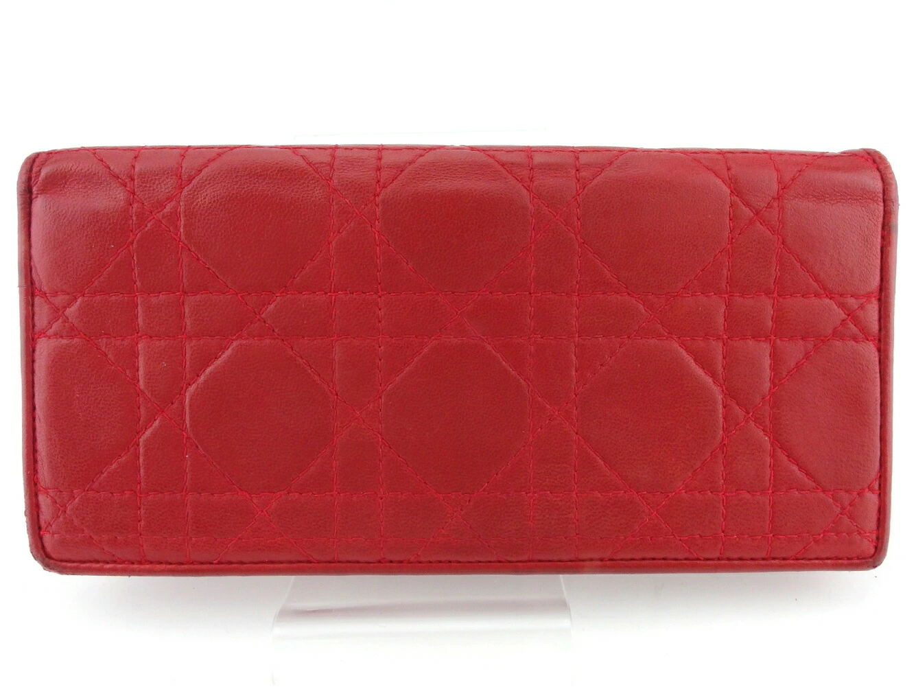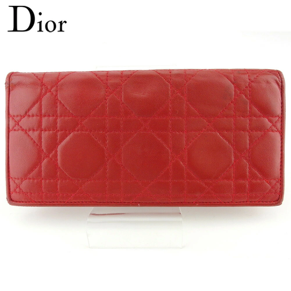 [Rakuten Fashion THE SALE ★ Up to 50% Off] Dior Lady Dior Long Wallet with Cannage Stitching in Red and Gold, Men's, Pre-owned, High-End Brand, Vintage