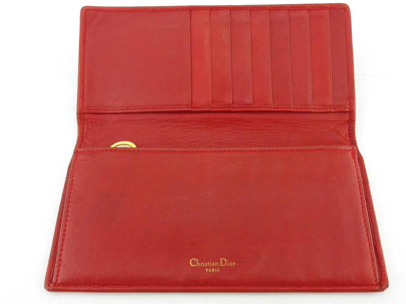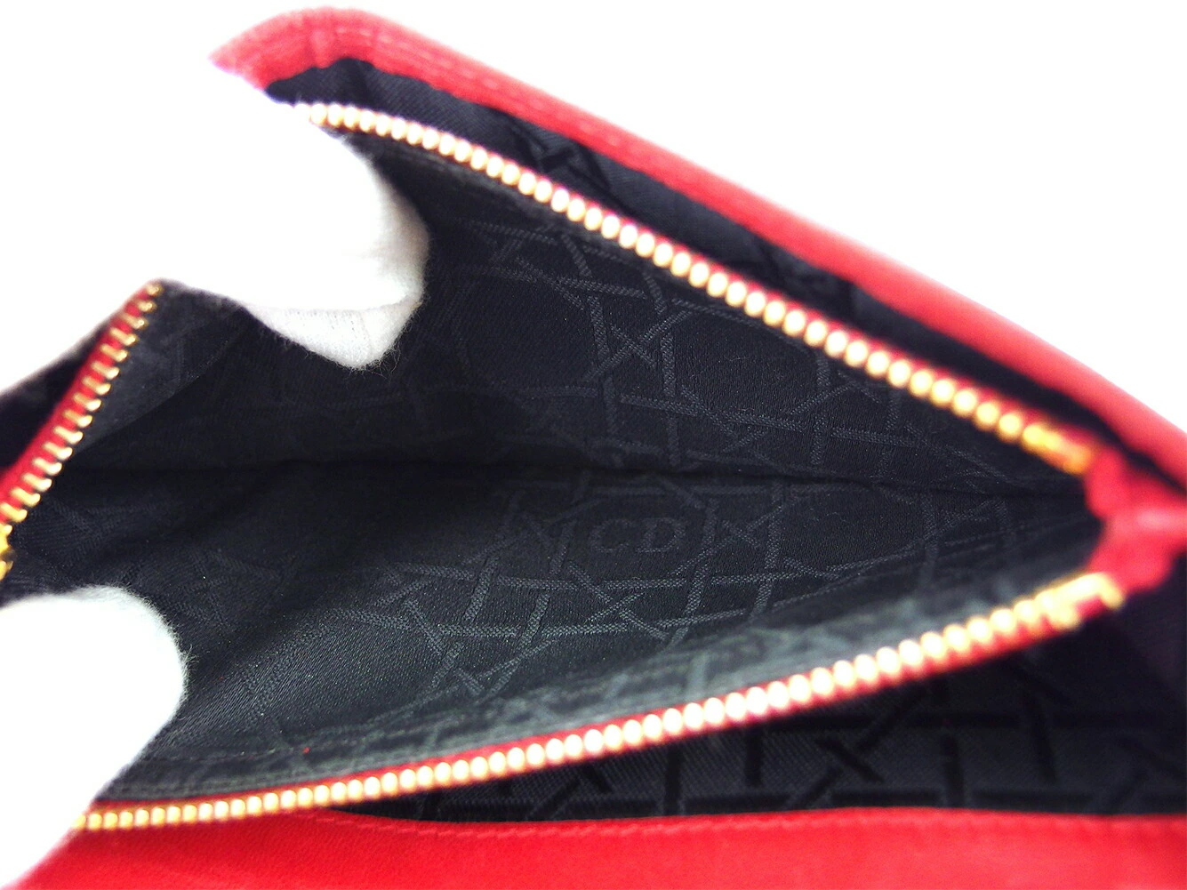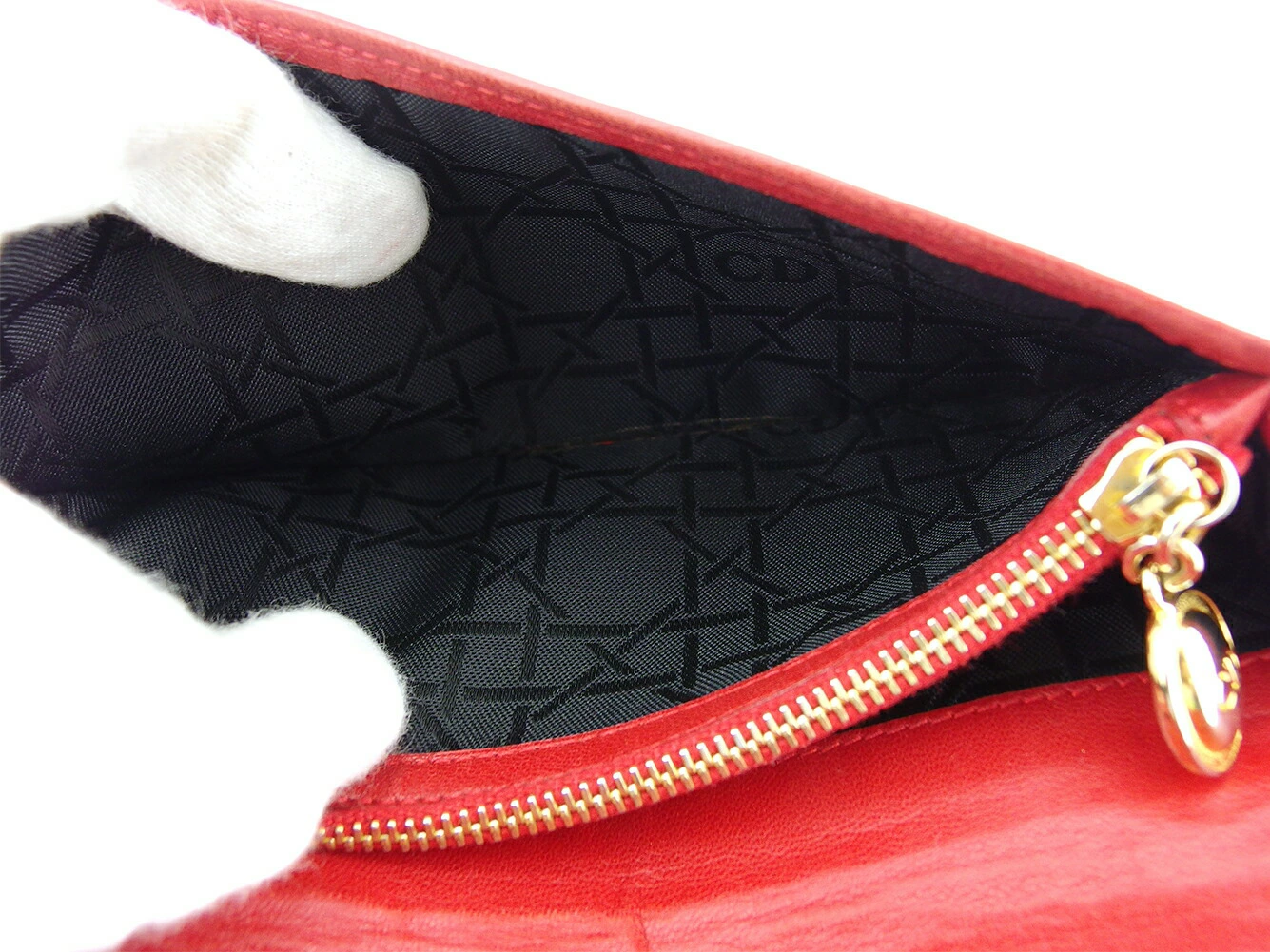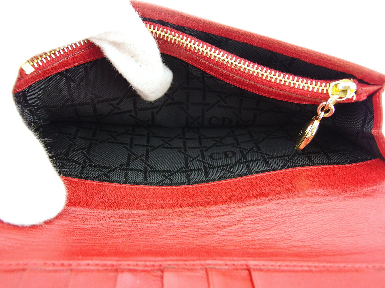 [Rakuten Fashion THE SALE ★ Up to 50% Off] Dior Lady Dior Long Wallet with Cannage Stitching in Red and Gold, Men's, Pre-owned, High-End Brand, Vintage